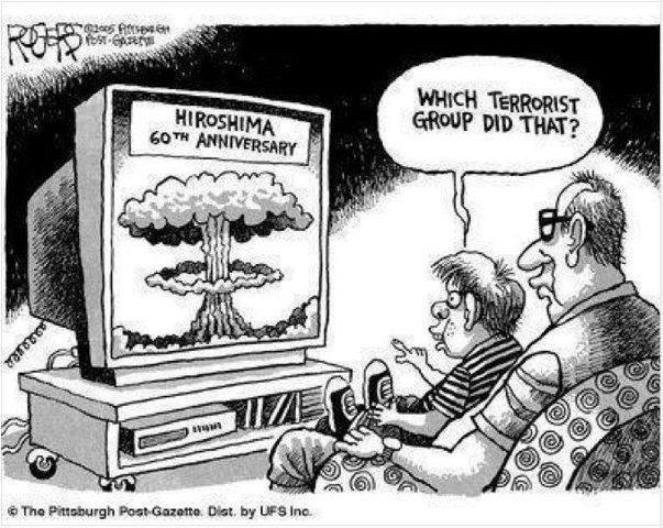 In that post a year ago, I talked about Robert McNamara, a person involved in the nukes dropping and later Secretary of Defense for the Vietnam War, and he said about WWII, and the firebombings and the nukes, “We were behaving like war criminals, but what is immoral if you lose, but not if you win?” And that’s exactly it. We won, we get to write the narrative. And the narrative has been particularly spell-binding on the American people for the last 69 years.