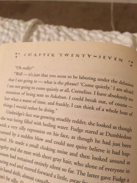 Anyhow, the cool part of this book is that to go against Dolores, Harry begins teaching Defense Against the Dark Arts to fellow, interested students right under Dolores’ nose. It’s great.