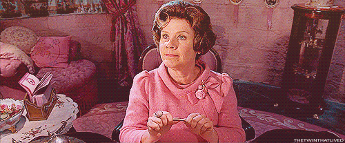 The way she treats Harry especially, but just anyone in general at Hogwarts and elsewhere is frustrating. She makes Harry repeatedly do detention where he uses a magical quill, which literally siphons his own blood from him by writing into his hand, “I will not tell lies.”