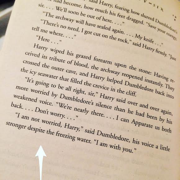 And you can tell Dumbledore loves Harry, although we’re going to find out some troubling caveats to that in the seventh book, but his trust in Harry is incredible. After drinking a vile potion that weakens him greatly, Harry leads Dumbledore back to Hogwarts where this exchange takes place: