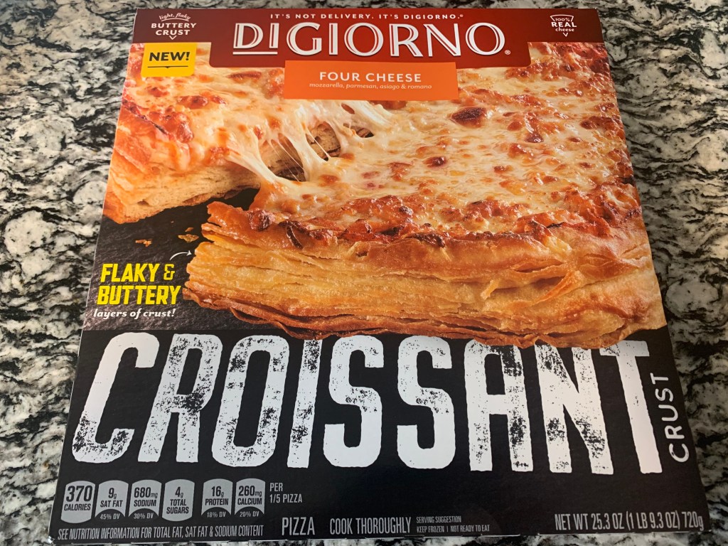Yeah. Remember those wide-eyed posts I was making about eating better and counting calories? Let’s just say August (and uh, now September) was a rough month. Part of that roughness is trying DiGiorno’s newest pizza creation, the Croissant Crust Pizza, the four cheese variation.