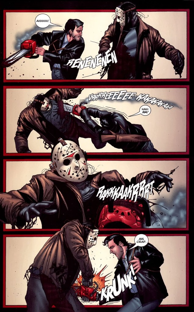 I’m enjoying the artwork in this one, check out this panel when Jason Voorhees turns his ire to Laurie: