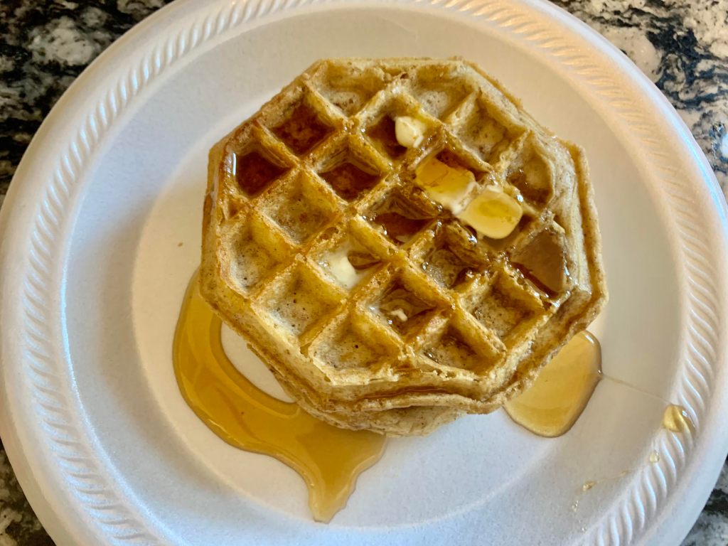 These had a nice cinnamon taste to them, of course, and because of my syrup I added, it’s hard to know how much of the maple taste came through. The main attraction, though, is just that nice, thick Belgian style of the waffle. Fluffy, not so much, but thick? Yes, please. And if you’re counting calories like I used to, we’re only talking 340 calories for the two I had, which admittedly, I sometimes have three or even four in one sitting. Add 50 calories for a tablespoon of syrup and something like that for the butter, and it’s not bad for one meal.