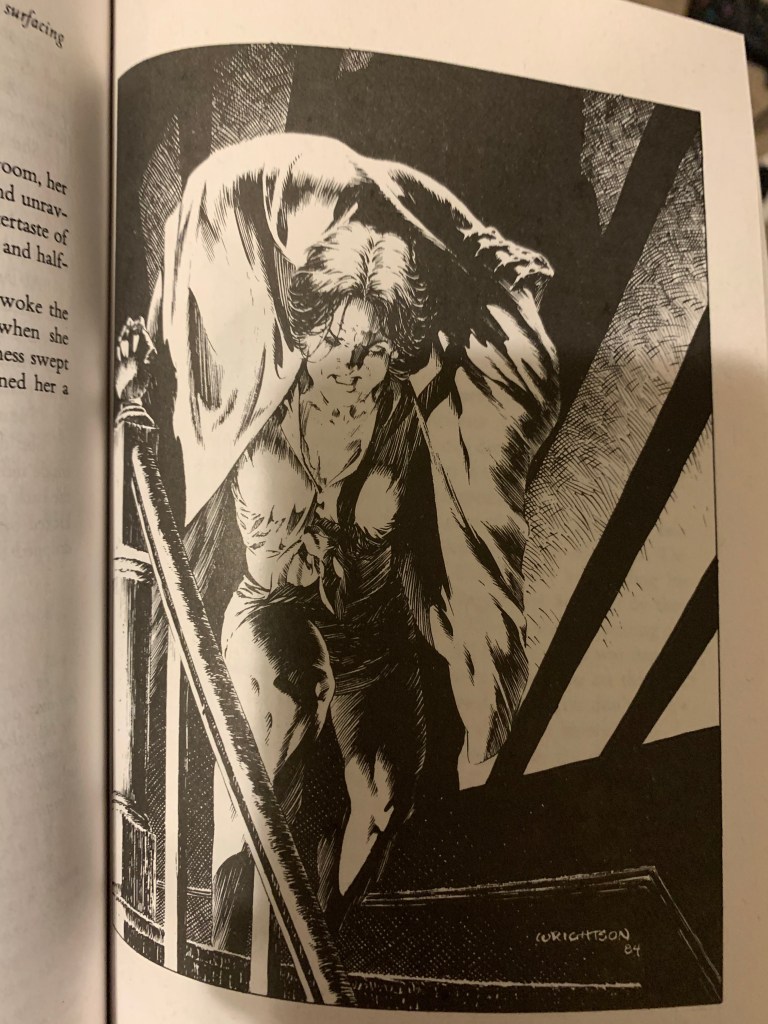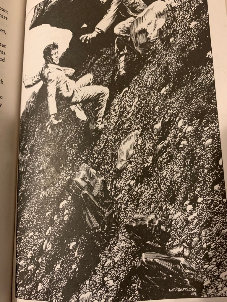 Also, a rather small item is I’m confused by the cover art for the book in the 1978 version, and the reprinted 1990 one has a version of it on the inside: