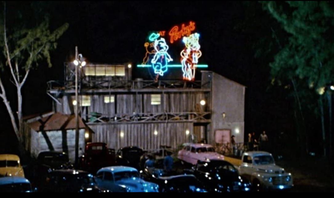 To backup, the premise of the film, which is set in the mid-1950s (and I don’t know why they did that because other than the vehicles and a mention of former president Dwight Eisenhower, this doesn’t feel like the 1950s at all) is that teen boys looking to get their rocks off at the local strip club, Porky’s, are instead taken for a ride (metaphorically) by the owner and local sheriff. The teens plot their revenge. In other words, it’s a familiar plot for a raunchy teen comedy in that the central driving force of the plot are horny teen boys trying to have sex. Along the way, we get the usual chauvinistic type material, including that peeping time scene, and there’s also quite a few slurs in this. That said (yeah, I know, but you have to roll with it in a film like this; you know what you’re going to get in that regard), what surprised me about the movie is that virtually the entire middle had nothing to do with Porky’s, and in fact, one of the boys who keeps going back to the club to enact his revenge and instead is repeatedly beat up, exists on the peripheral until the climax.