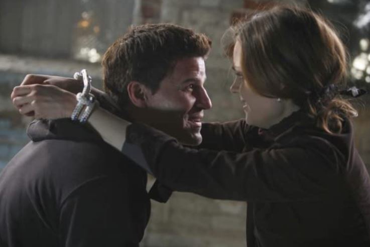 So, I’m conflicted. On one hand, one of my gripes with shows like this is that the genius, braniac scientist goes into the field and thus, into danger. There is absolutely no reason for Bones to be accompanying Booth into the field, and I find it unlikely that that would happen in real life. Maybe to the crime scene, but not to bust down doors and catch suspects. But on the other hand, I think the reason the first season started a little slow for me — other than the obvious reason that any show takes some time to get into its groove; that’s just natural — was that it seemed like there wasn’t much action. Booth and Bones weren’t ever roughing it up with suspects or in any real danger. Well, boy, that sure changed as the first season continued and now mid-way through the second season.