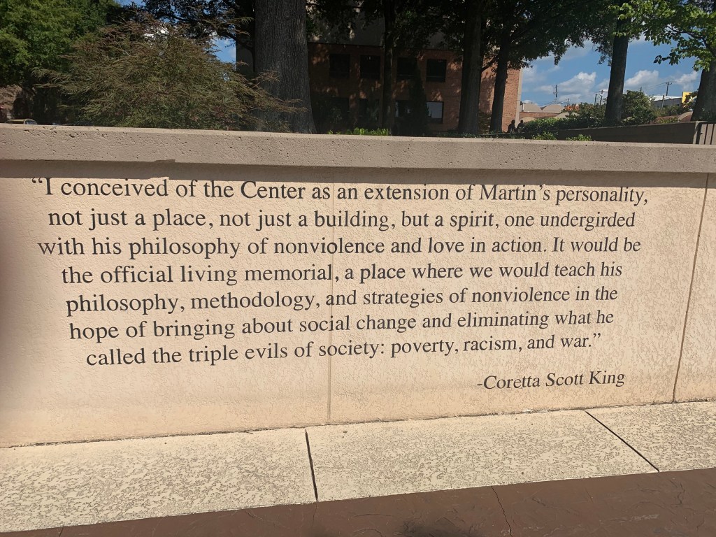 Well, another one of the big items I stumbled upon, which admittedly I didn’t even know was there, was the birthplace home of Martin Luther King, Jr., as well as where he’s entombed with his wife, Coretta Scott King. The entombment is at the Martin Luther King, Jr. Center for Nonviolent Social Change, which is also right near the famed, historical Ebenezer Baptist Church. To see a church that not only was built in 1886, but where MLK himself co-pastored, had his funeral service, and then Congressman John Lewis also had his funeral service (for which former President Barack Obama attended) gave me goosebumps.