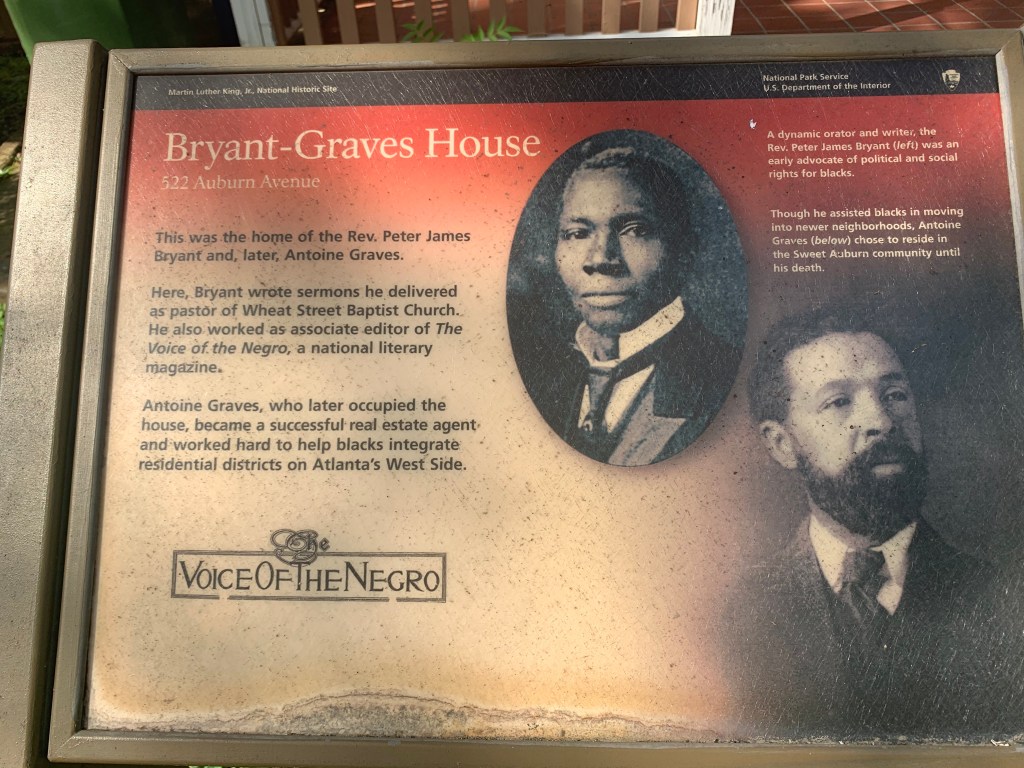 In fact, that entire area where Martin Luther King, Jr. was born, Sweet Auburn, is sort of a Civil Rights Era historic neighborhood. One of the other houses I took a photo of was that of Rev. Peter James Bryant and then later Antoine Graves.