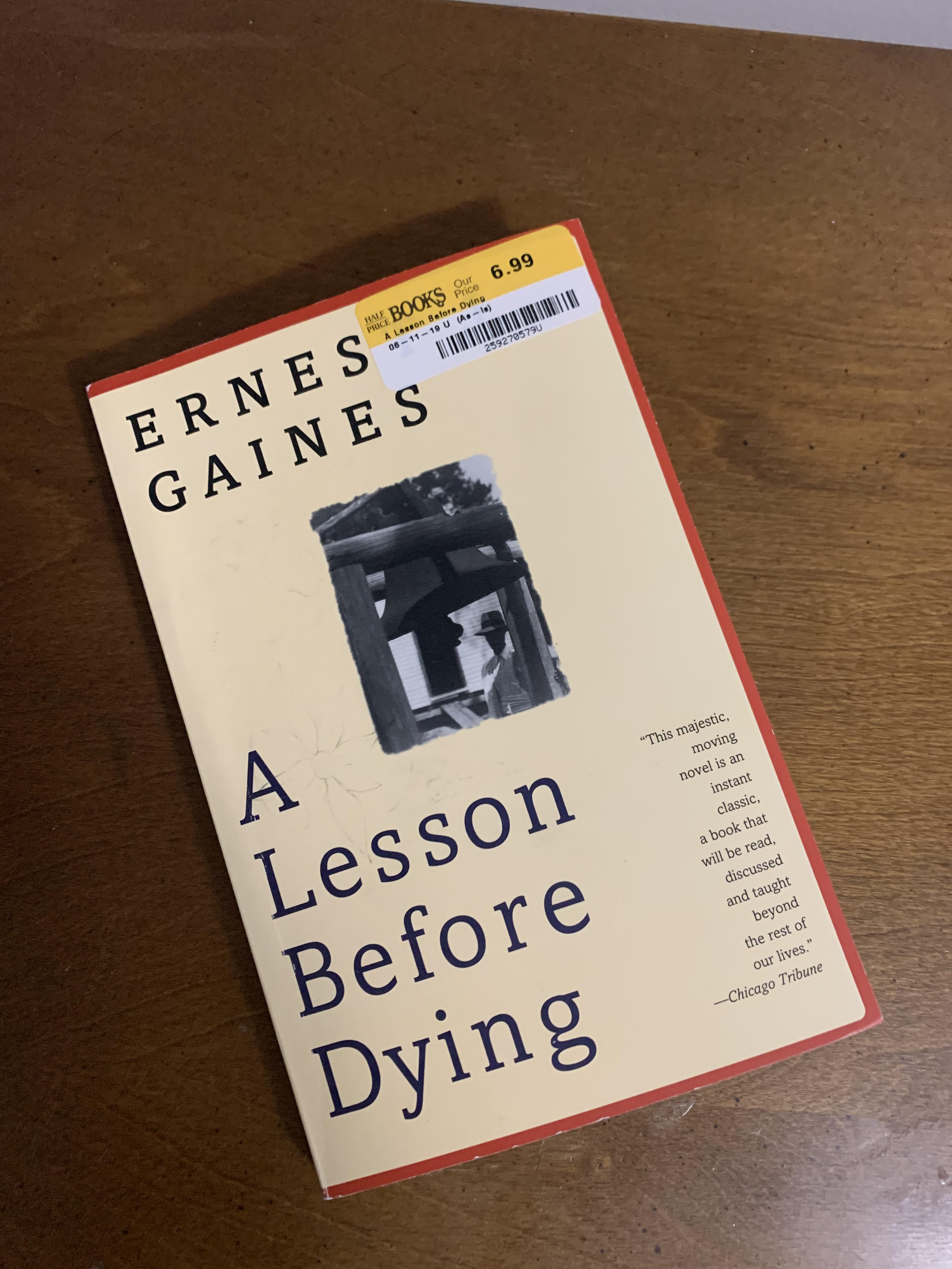Even though slavery ended formally in the United States in 1865 with the ratification of the 13th Amendment, the caste system formally established by Jim Crow “black codes” and informally through the cultural expectation of relations between whites and blacks persisted well into the 20th century. It’s always worth pointing out the fact that people alive right now existed in that time period. It’s further worth pointing out that the very author of this 1993 book, A Lesson Before Dying, Ernest Gaines, was born on a plantation in Louisiana, growing up in old slave quarters.