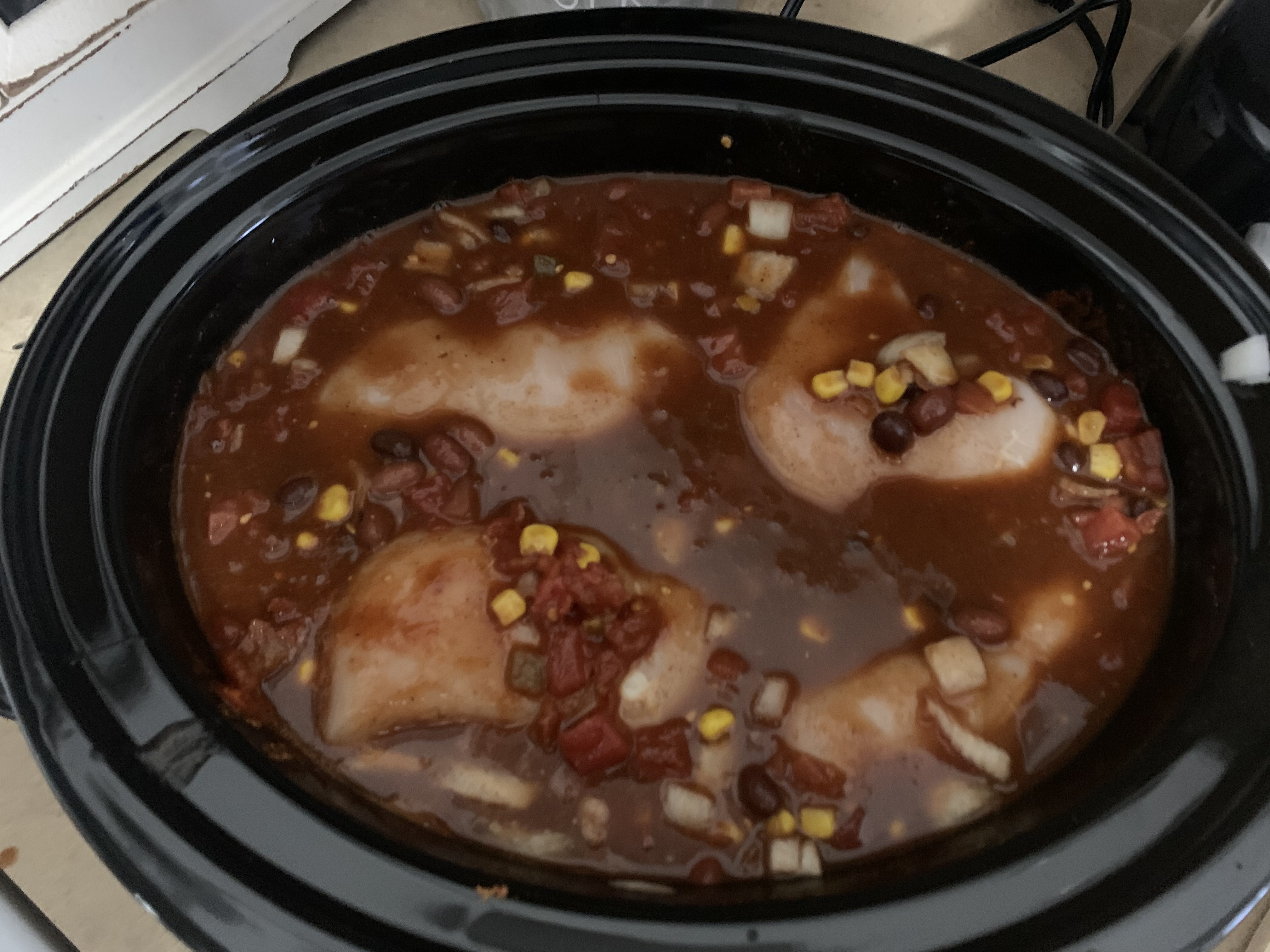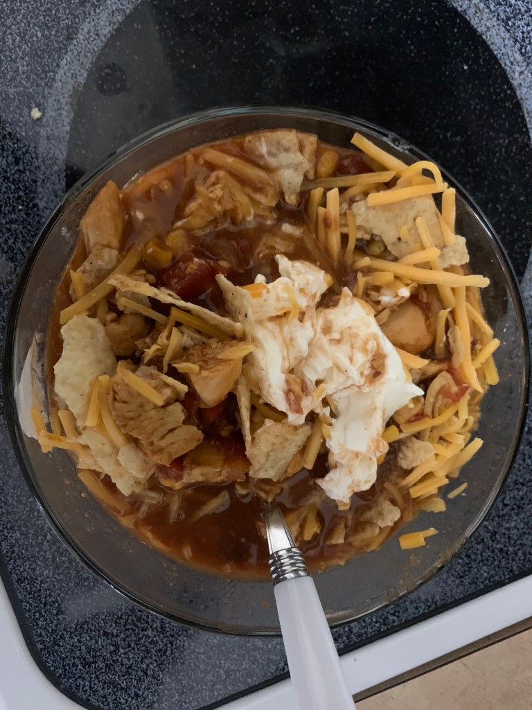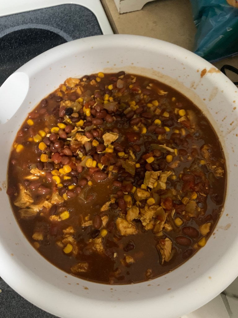 So, after more than a month at my own place and more than a year of owning a crockpot, I finally busted out my crockpot! As far as the former goes, I’ve been procrastinating on it because I knew it would involve a trip to the store to get ingredients for a specific recipe and such. As for the latter, I wasn’t going to mess with it until I had my own place. Alas, I was ready today after visiting the store yesterday evening. Here’s the recipe from All Recipes I used, Slow Cooker Taco Chicken Soup.