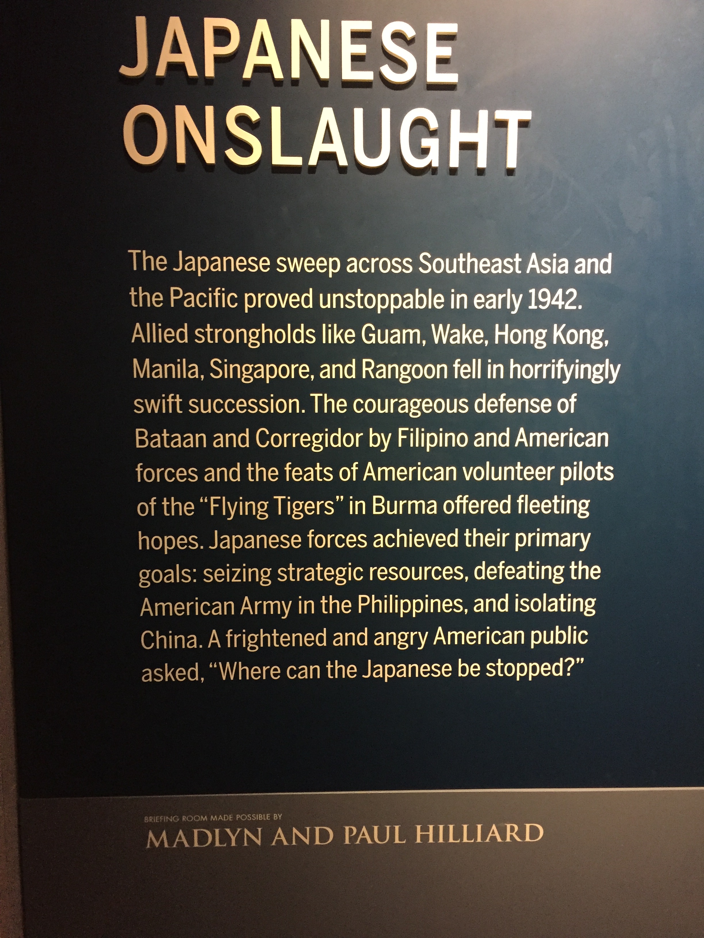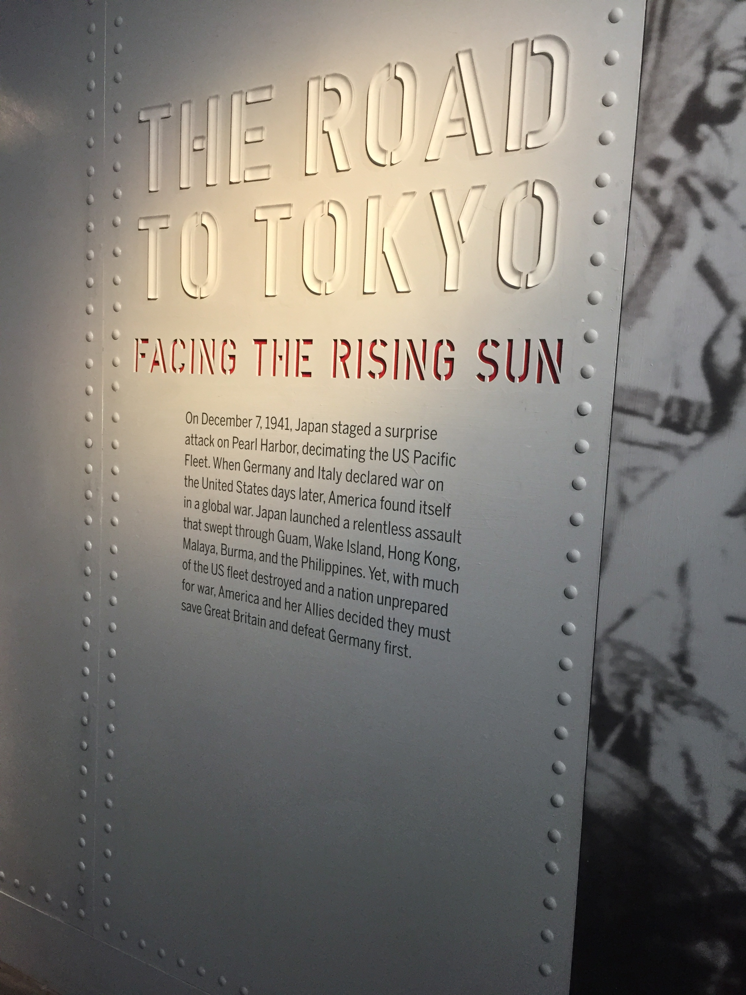 Speaking for myself, I don’t know much about the Pacific Theater of War or the Russian side of things. And while I know more about the European Theater of War, I don’t know much about how it encompassed the Middle East or Africa. There’s a really great exhibit at the museum called The Road to Tokyo I found helpful to that end.