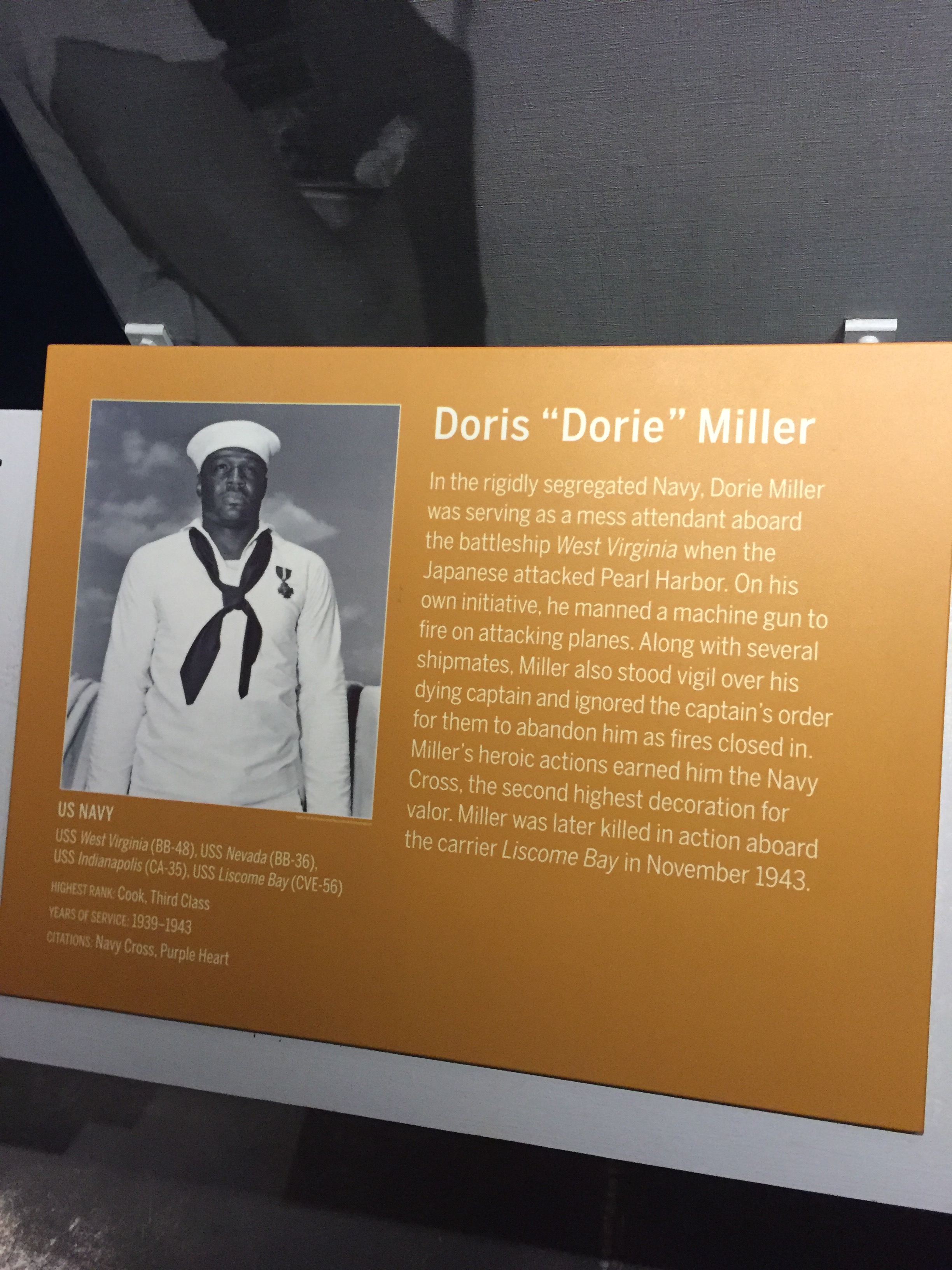 For example, the story of Doris “Dorie” Miller, who during the attack on Pearl Harbor, as a black man serving in a segregated Navy, ignored his captain’s orders to abandon him and returned fire on the invading Japanese planes. And when you consider that a lot of people serving in all theaters of war were 17, 18, 19, 20 year old kids? It’s extraordinary the valor on display like Miller’s.