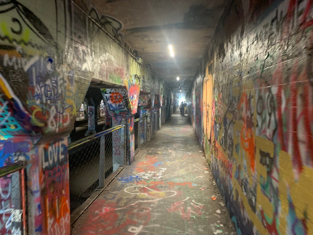 In September 2020, when I visited Atlanta, Georgia to skydive for my birthday, I skydived and also visited the King Center, two items I previously wrote about. Well, one of the other notable items was walking through the Krog Street Tunnel. If you’re not familiar, as I wasn’t prior to visiting, it’s a tunnel in Atlanta linking the Cabbagetwon, Reynoldstown and Inman Park neighborhoods in Atlanta, known for its street art, or graffiti, along the walls of the tunnel. It’s also popular with cyclists.