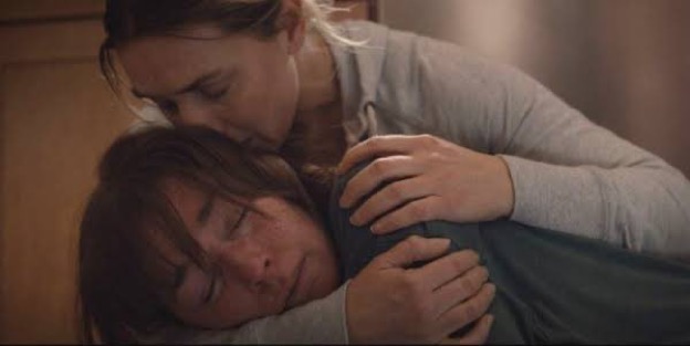 Lori blames Mare initially for destroying her family, for not leaving it alone. But then, in the second-to-most powerful moment of the show (the most powerful is coming up after), Mare goes over to Lori’s house, and Lori collapses in her arms, eerily reminiscent of how her dead son, Kevin, collapsed into her when she cut him down from the attic.