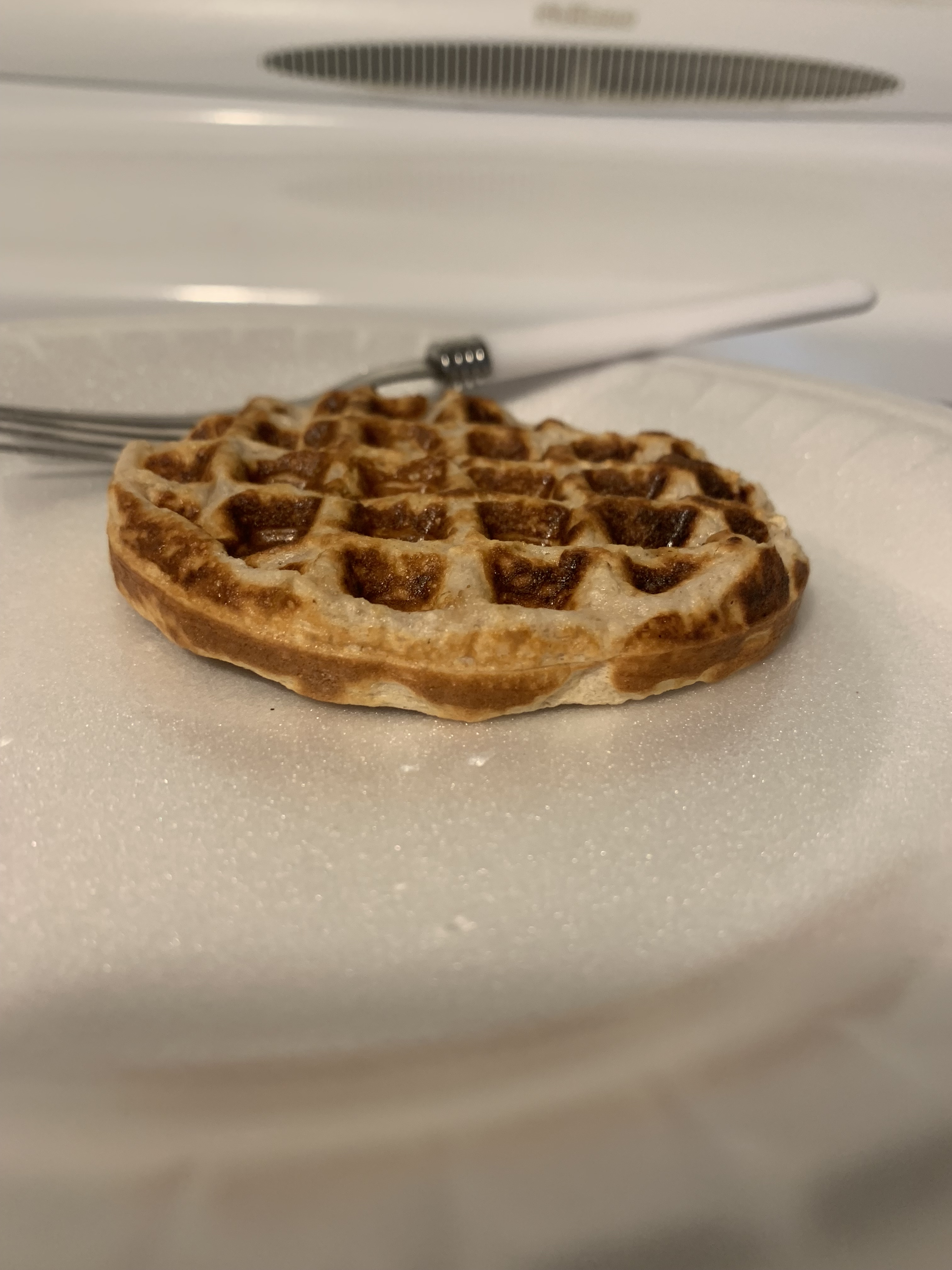So, overall, for these waffles, we’re looking at a little more than 200 calories, around 204 calories. That’s not bad! I don’t think that’s a huge caloric difference with my Aunt Jemima brand waffle (and pancake) mix, but I imagine it’s a healthier batter!