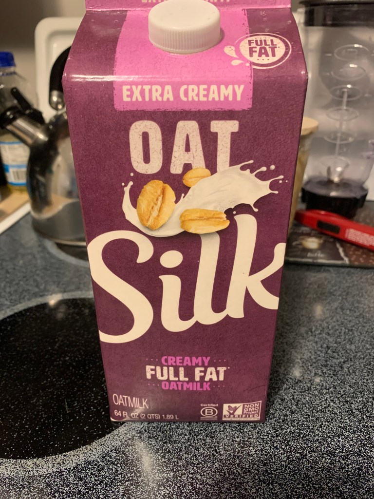 In my quest to continue experimenting with different kinds of milk — I have to say, being Mr. Cheesy here, that it’s quite a marvelous thing how many different kinds of milk there even are to try! — I’ve tried another one: oatmilk! I’ve stuck with Silk brand and specifically, this Silk brand of oatmilk is “extra creamy” and “full fat.” I don’t know why, but the phrase “full fat” makes me laugh. But I digress!