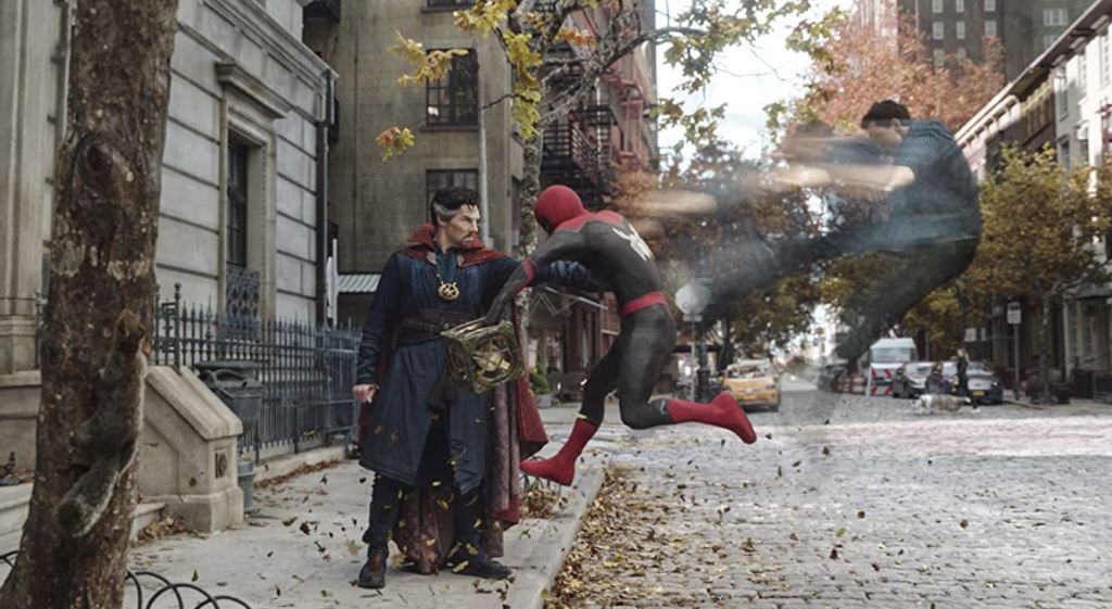 At that point, Ned and MJ inadvertently bring in the other two Spider-Men (Spiders-Man?), who help this universe’s Peter to cure the villains and send them all back home. Still, Peter goes back to asking Strange to erase everyone’s memory of him as Peter Parker (which is even more grandiose than merely erasing memory of him as Spider-Man) and he does. Now, MJ and Ned (and Doctor Strange himself) don’t even remember who he is.