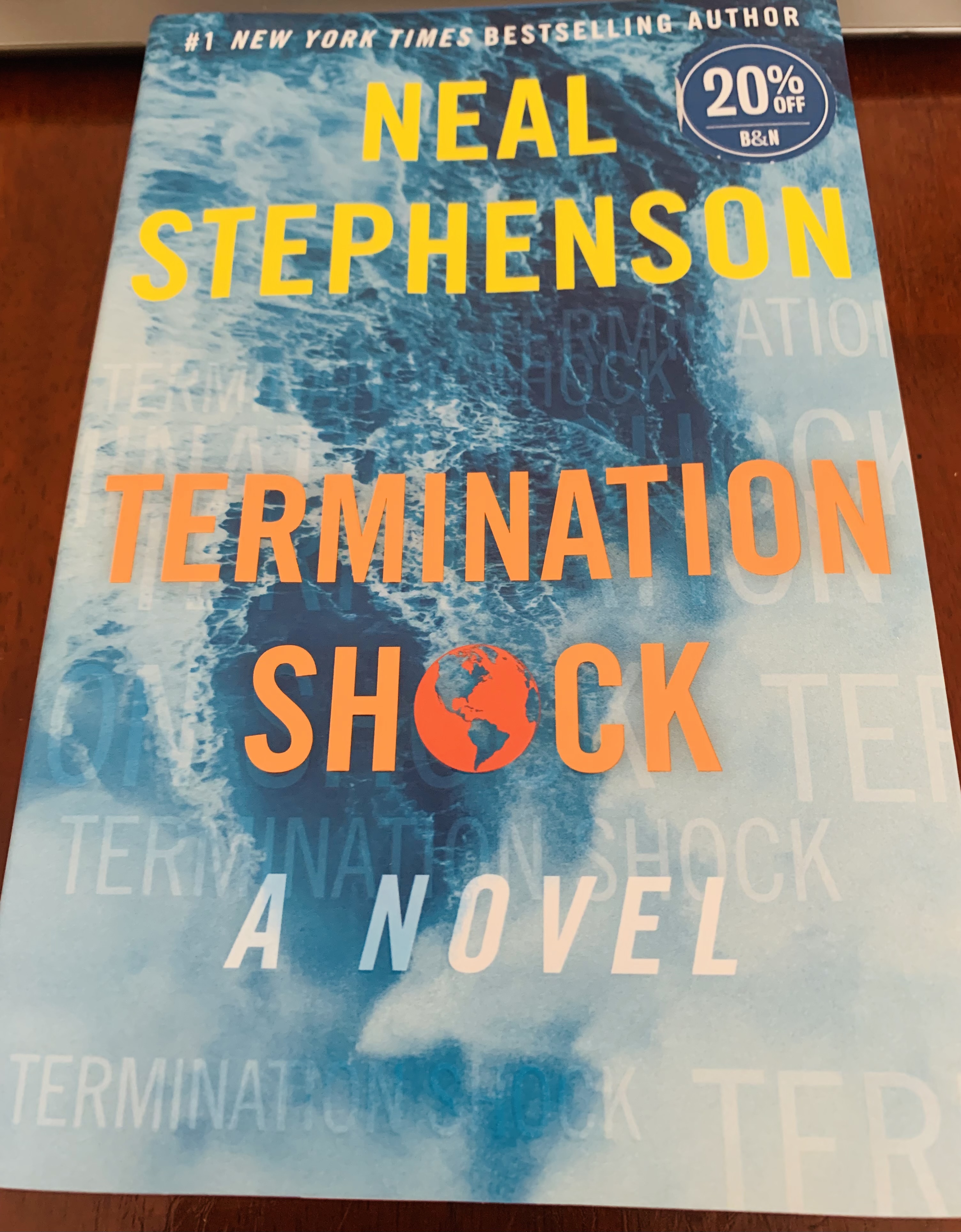 In that vein, Neal Stephenson’s latest speculative fiction, cli-fi offering (a term I recently learned as it regards science fiction novels specifically addressing climate change) is the 2021 novel, Termination Shock.