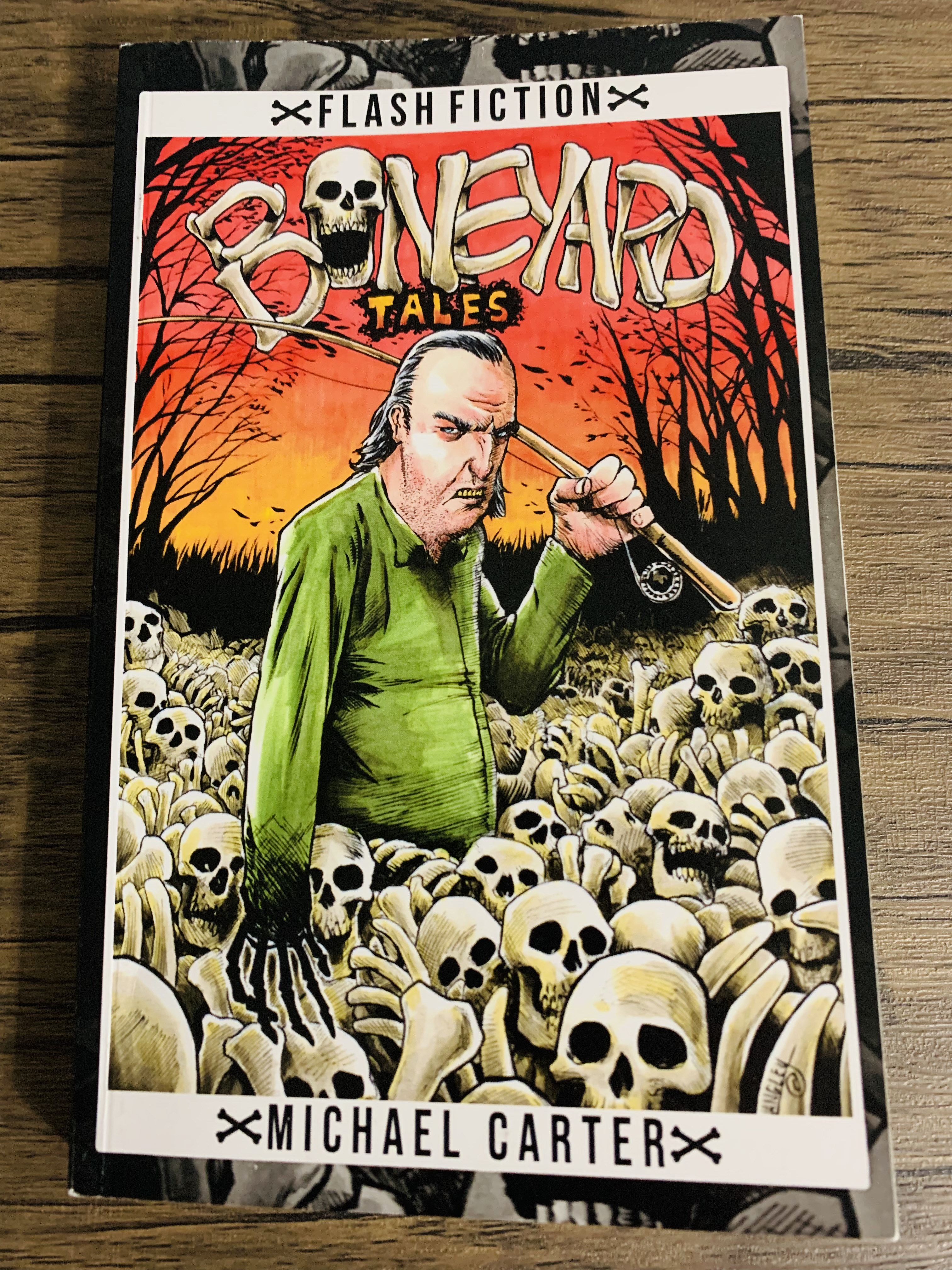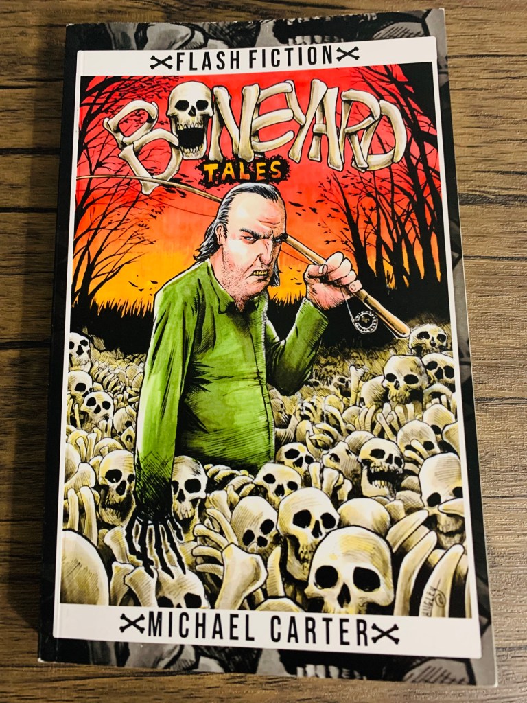 The bones are rattling from inside our own skin in Michael Carter’s delightfully depraved, creative flash fiction collection out this year, Boneyard Tales. I mean that in the way “the call is coming from inside the house” kind of way: The real monsters are sometimes the ones bone deep, tucked away in the marrow we don’t speak about. But Carter is something of an excavator of the twisted tales we tell ourselves to obfuscate that fact.