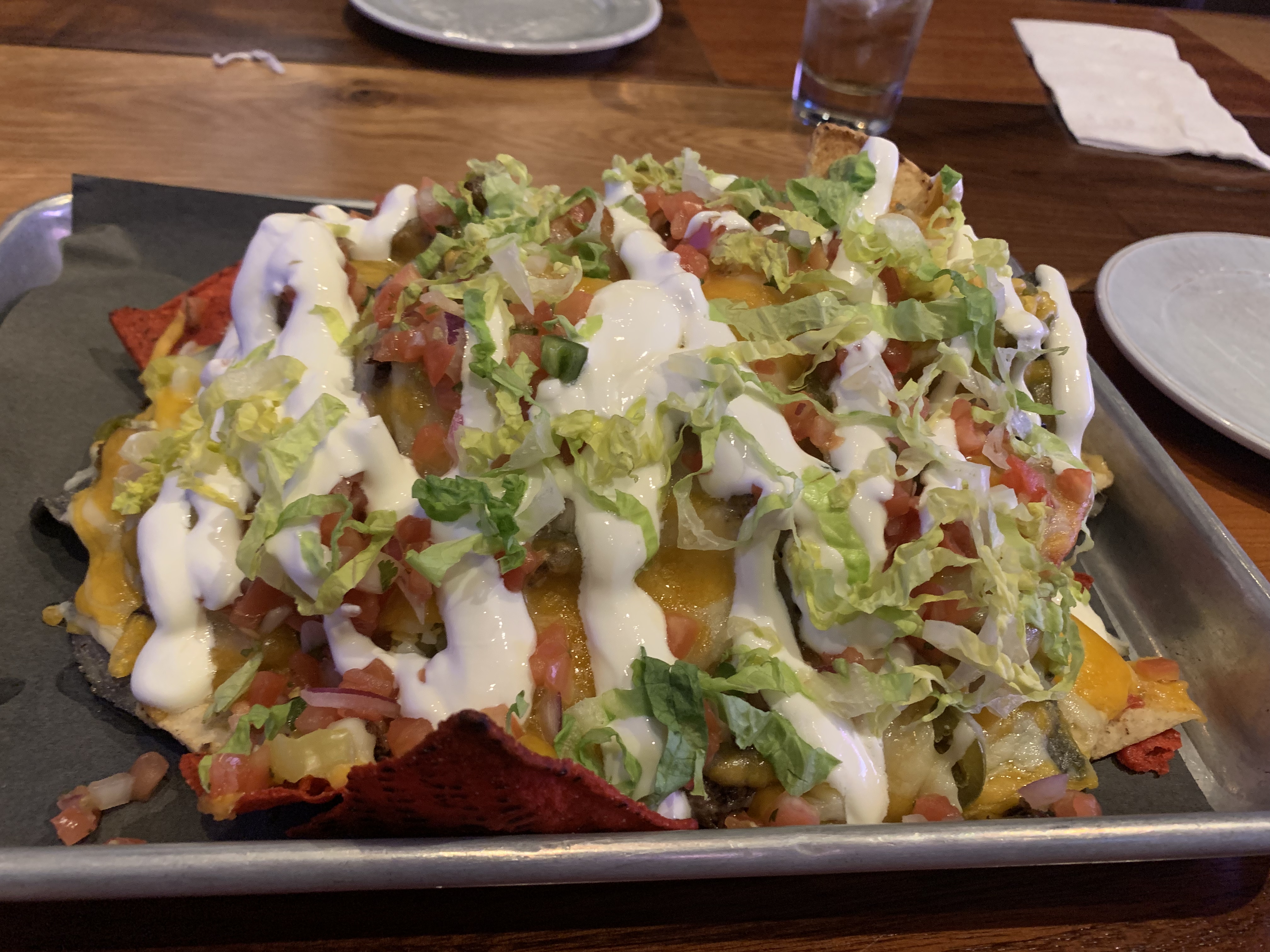 I got the nachos with braised short rib (hold the olives, thanks) and my goodness folks. Yes, I’m going to show you a photo of my nachos.
