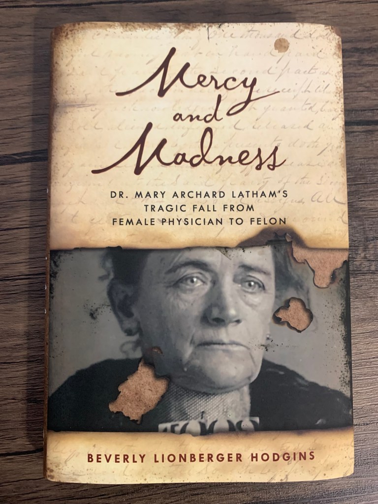 In Beverly Hodgins’ 2022 book, Mercy and Madness: Dr. Mary Archard Latham’s Tragic Fall From Female Physician to Felon — a book also forged during difficult times, as Hodgins did immense research (the Bibliography at the end is 23 pages long) at libraries, historical societies, government archives, and museums during the COVID-19 pandemic — she sketches the contours of a complicated figure, both as pioneer and a person falling from grace.