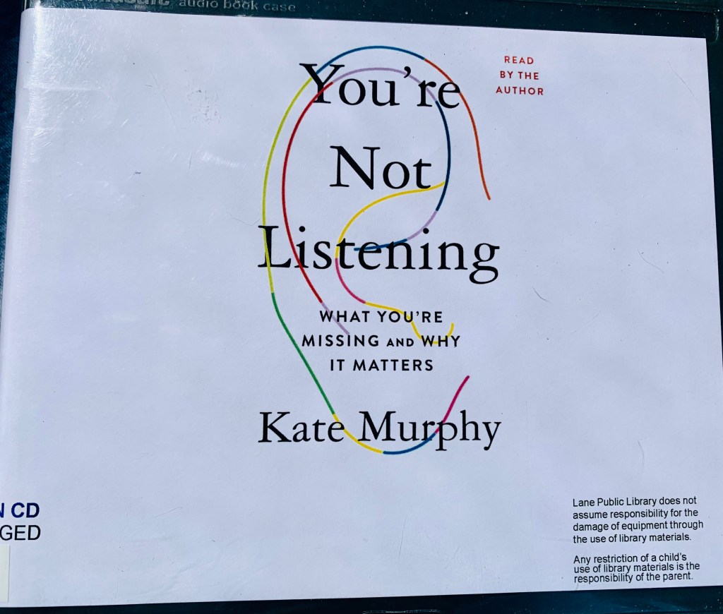 Listening is hard. And the irony wasn’t lost on me that I was trying to listen to journalist Kate Murphy’s 2020 book about listening, You’re Not Listening: What You’re Missing and Why It Matters while driving. Murphy also read the book herself, so that added to the auditory irony.