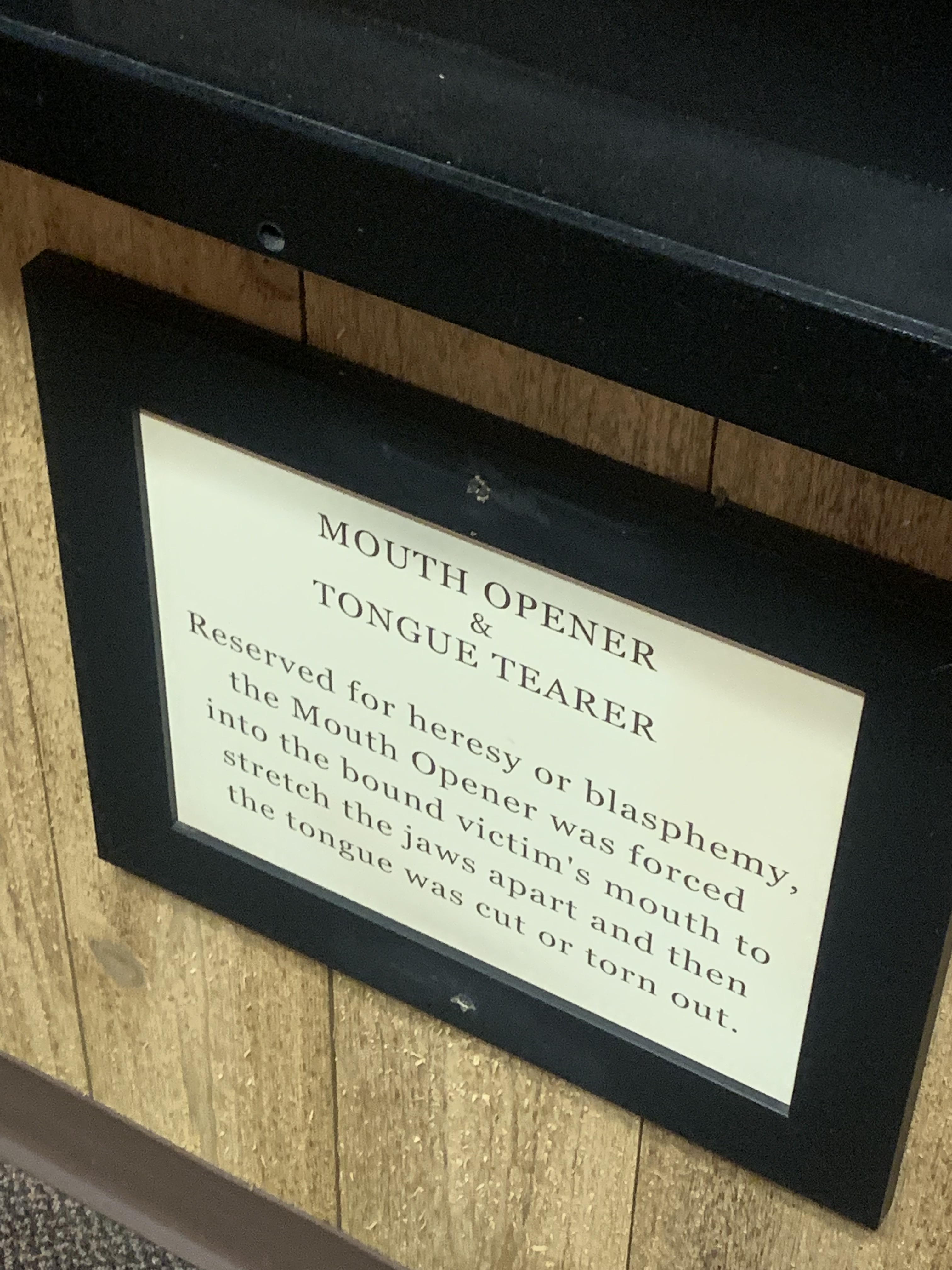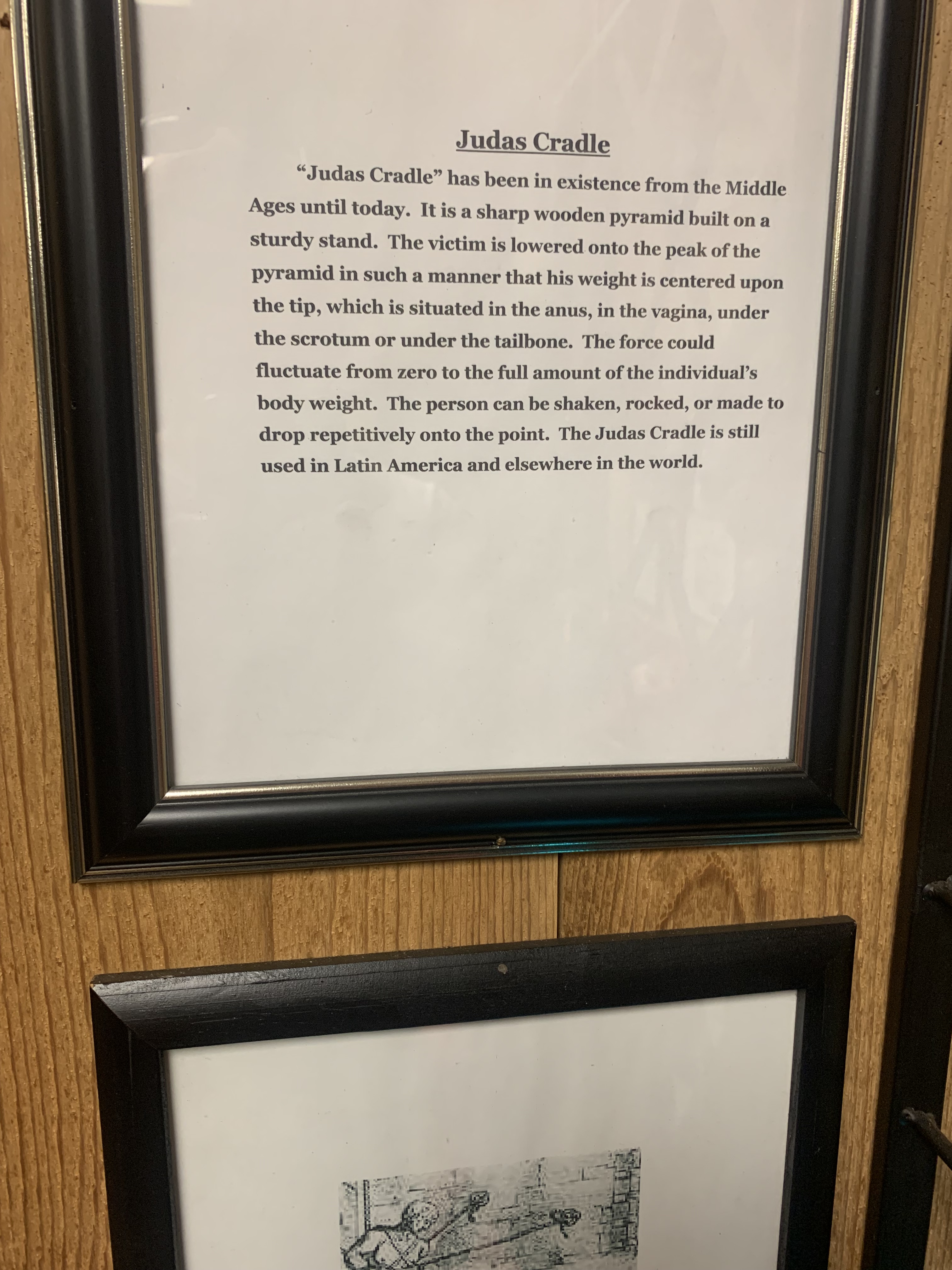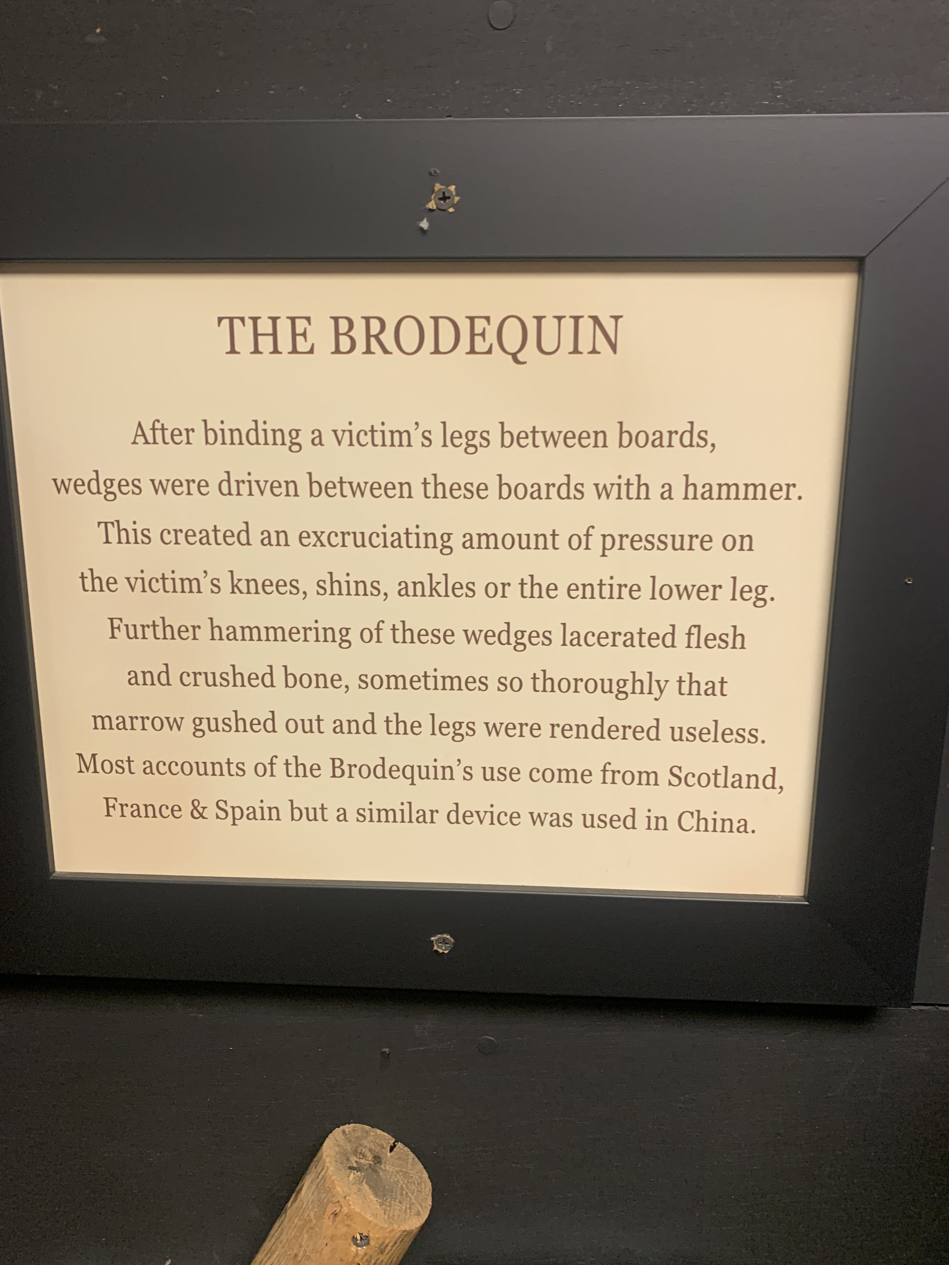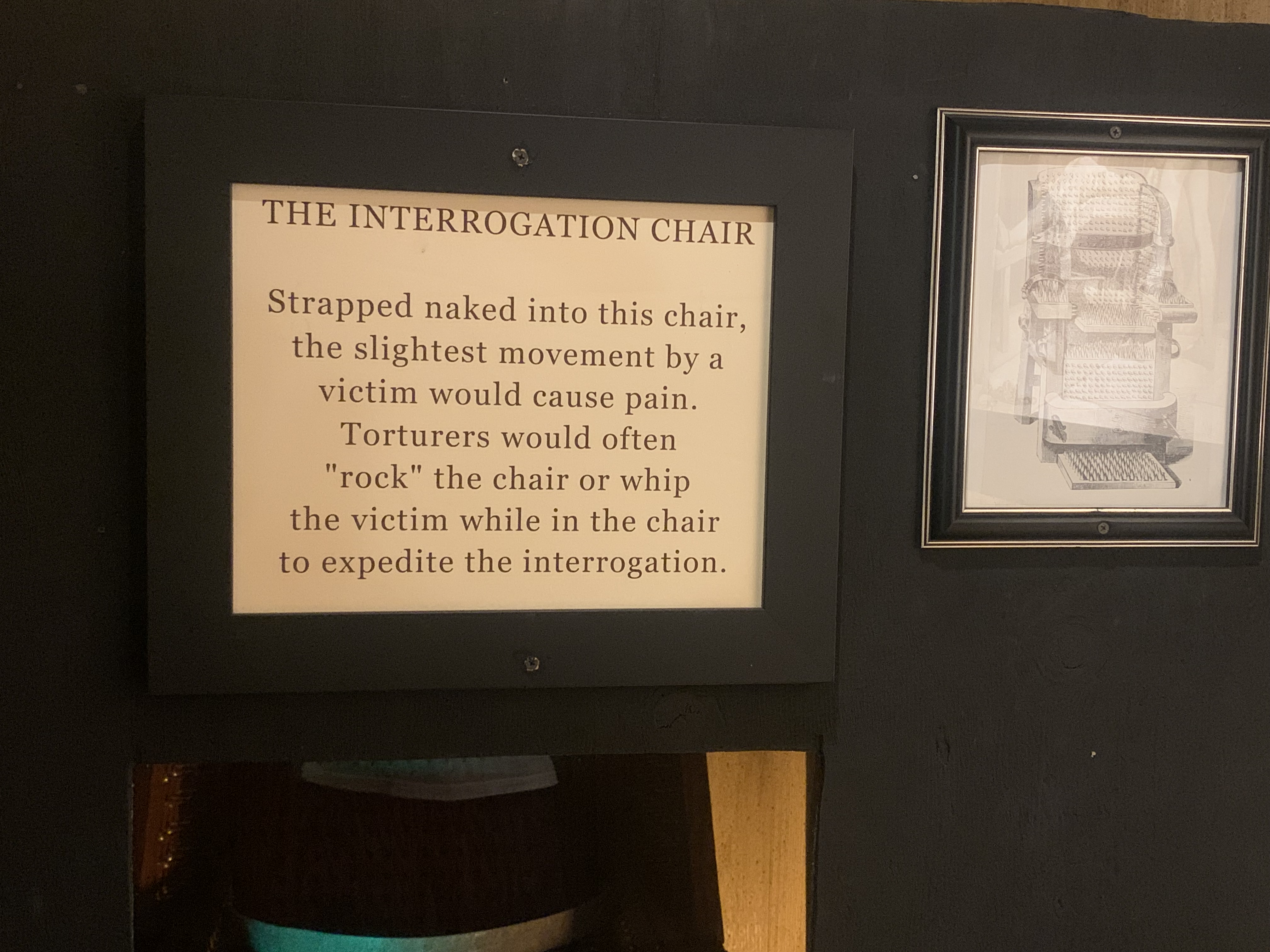 Here are the photos I took of the torture devices and their descriptions:
