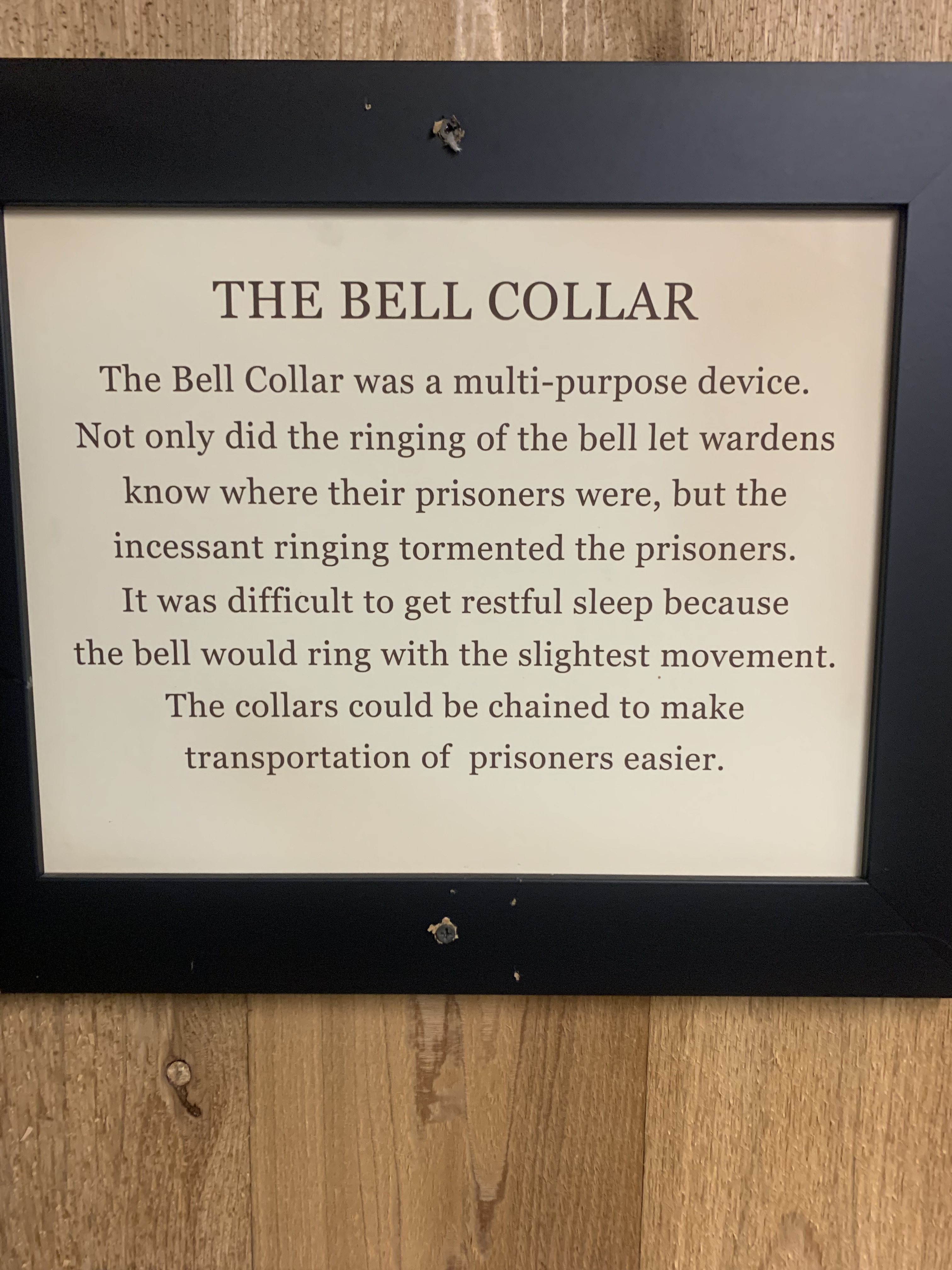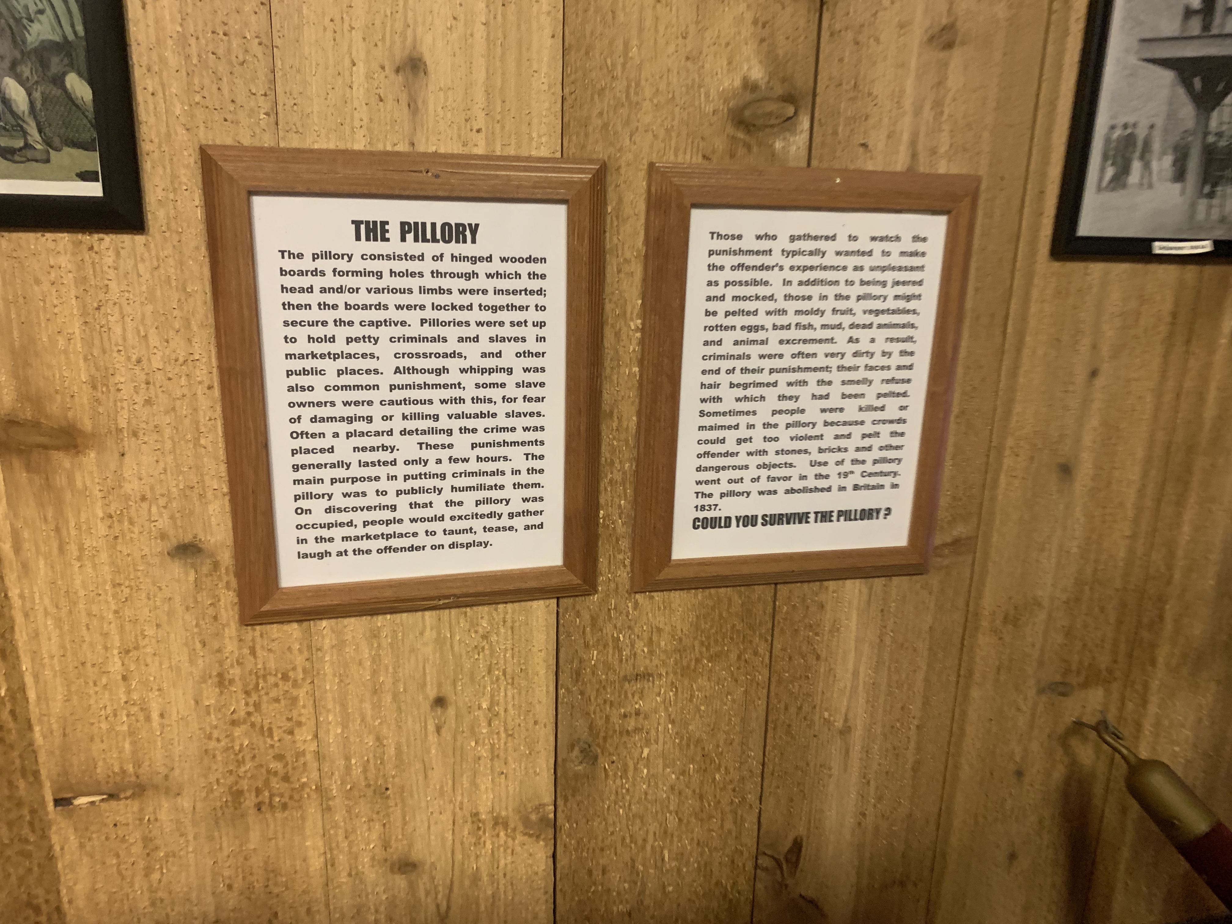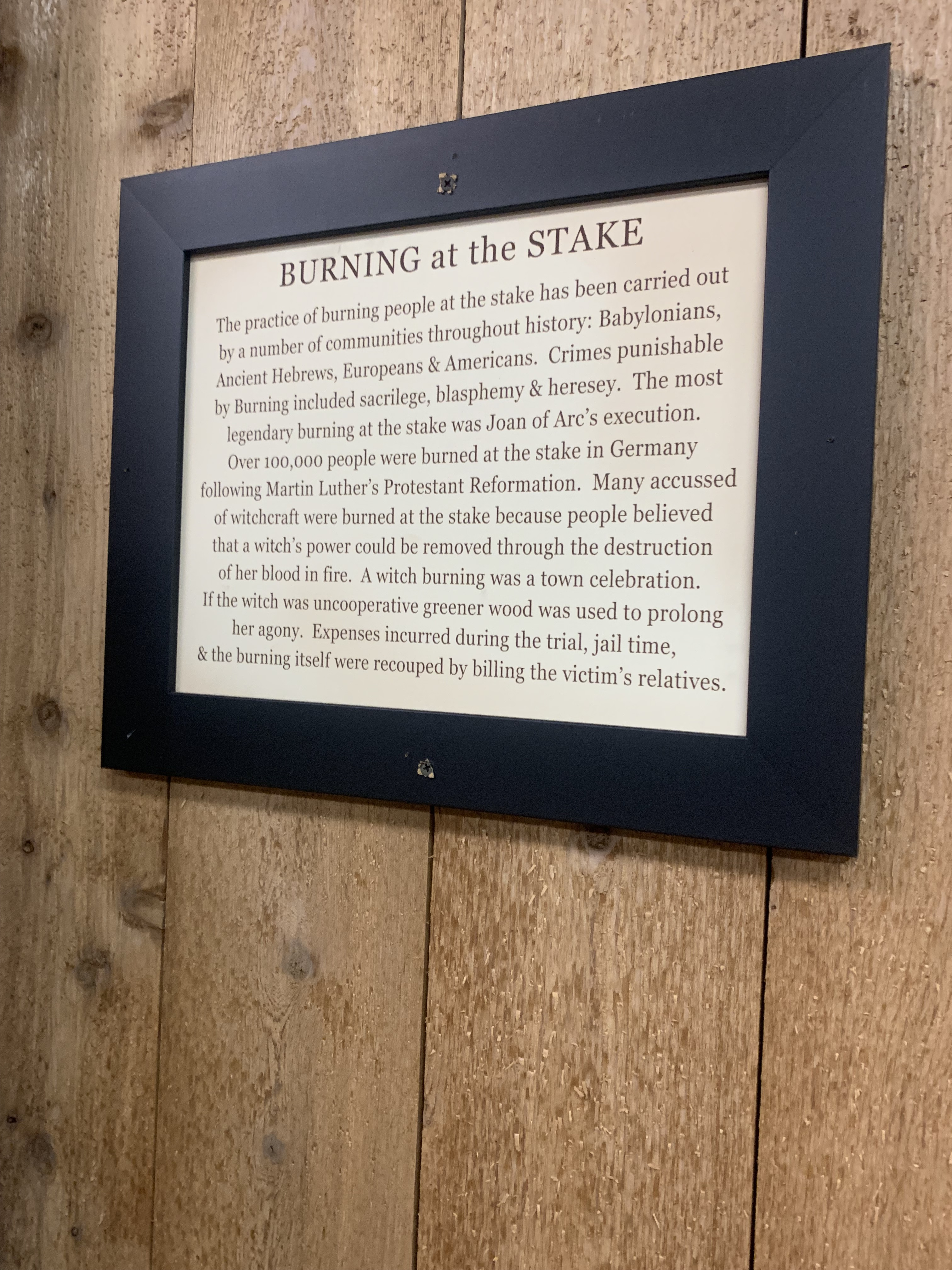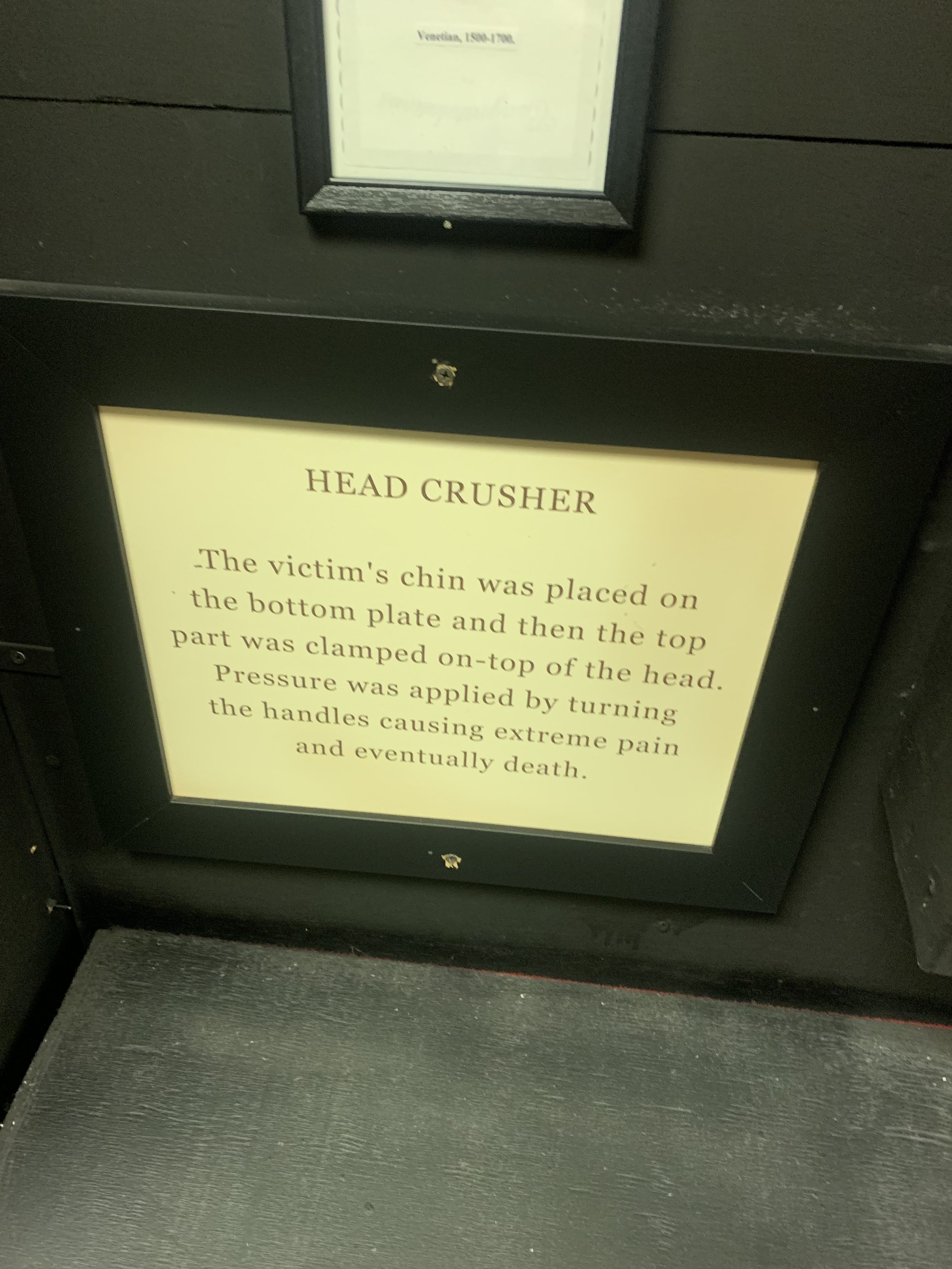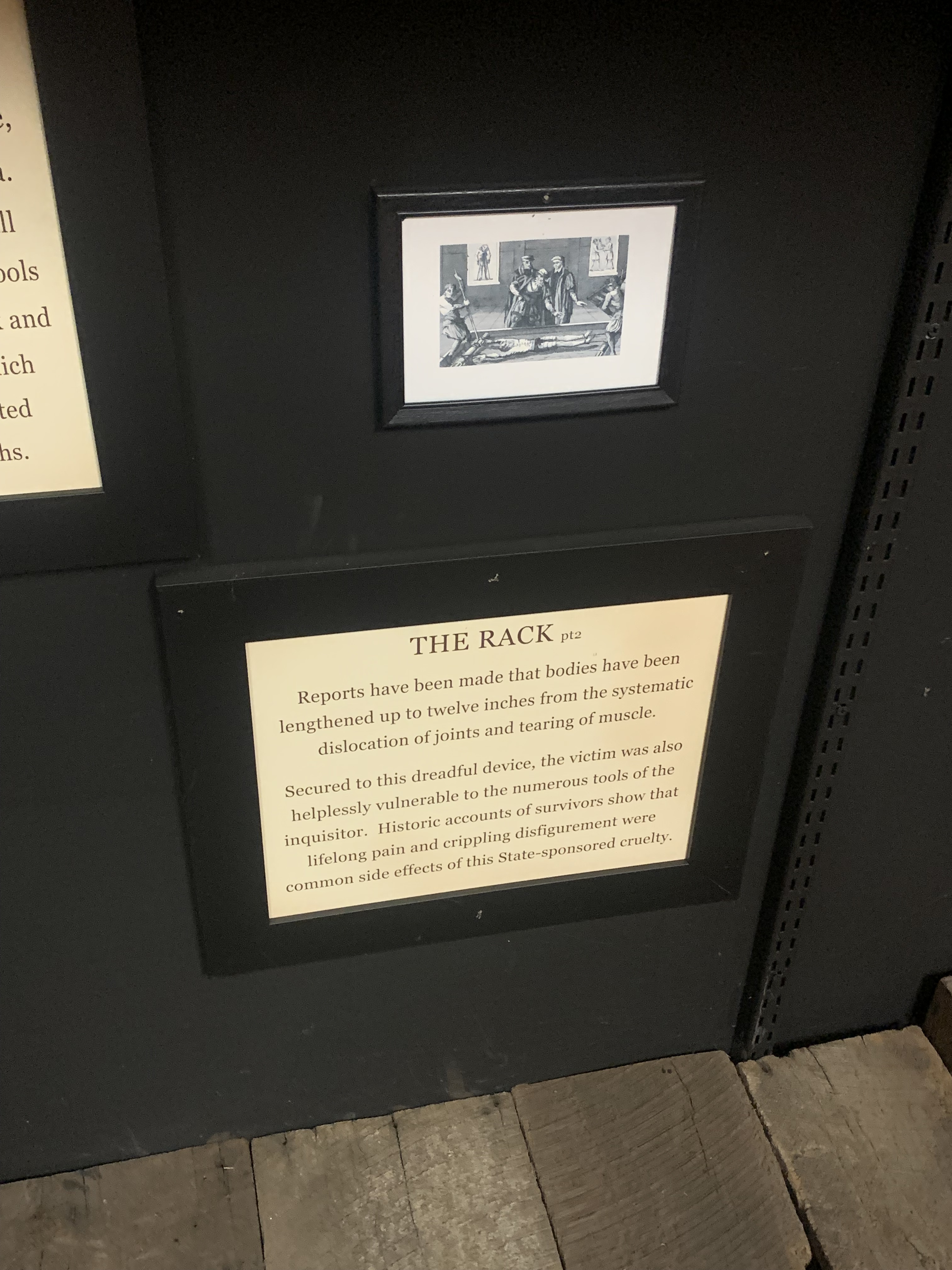 Here are the photos I took of the torture devices and their descriptions: