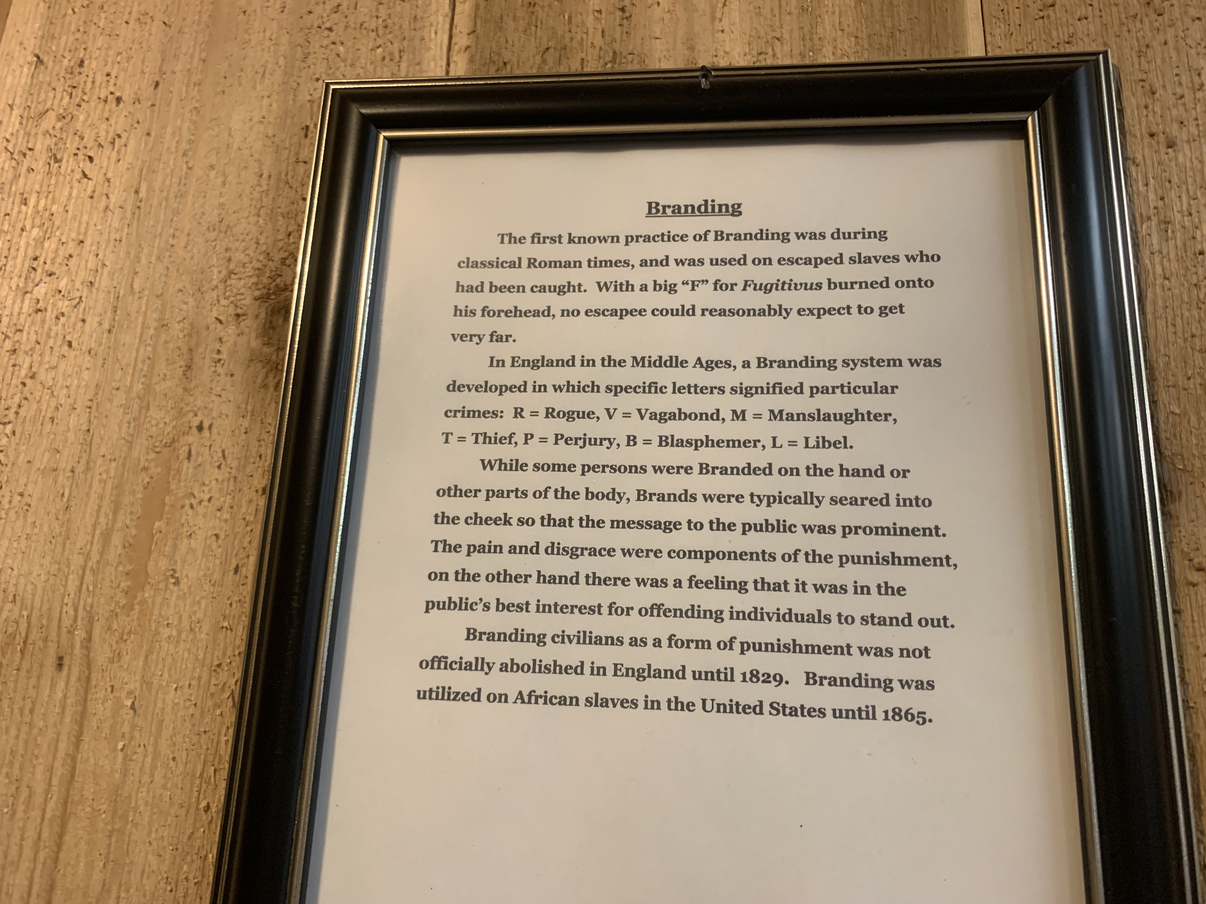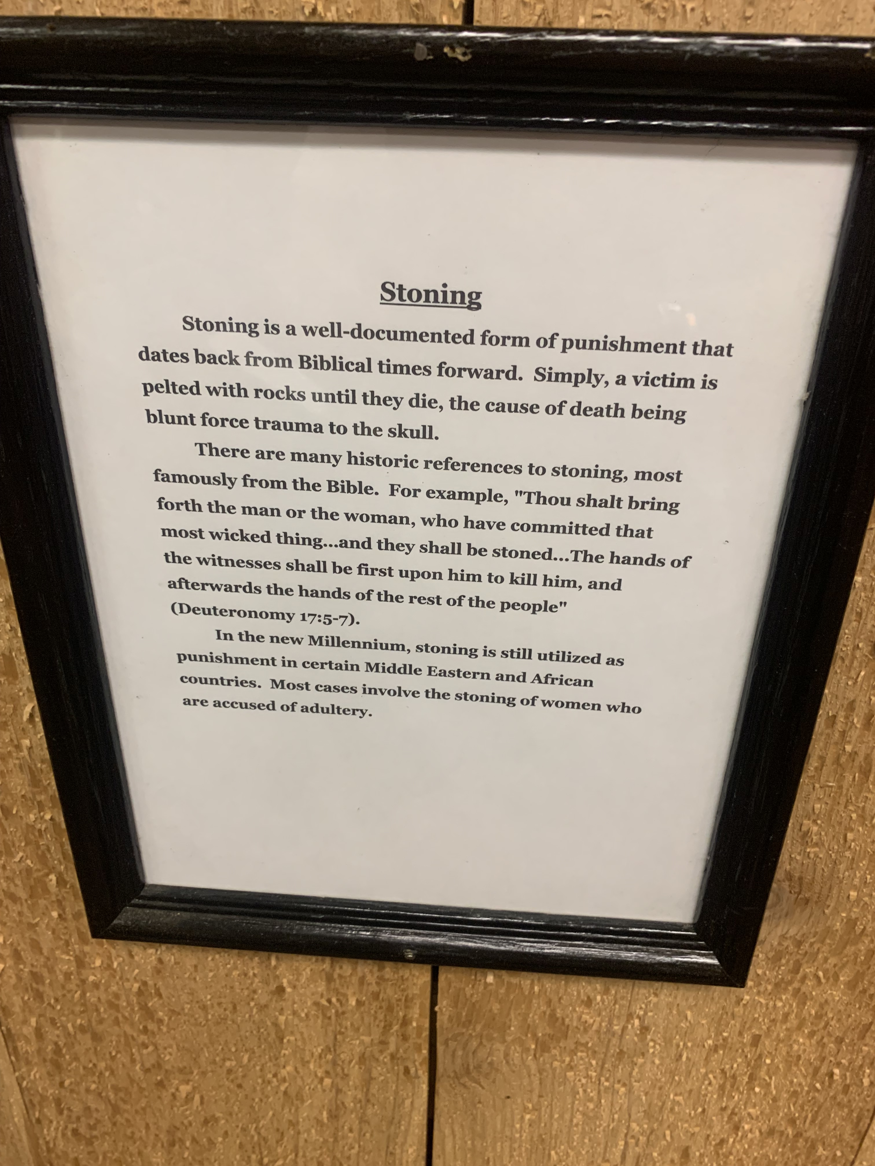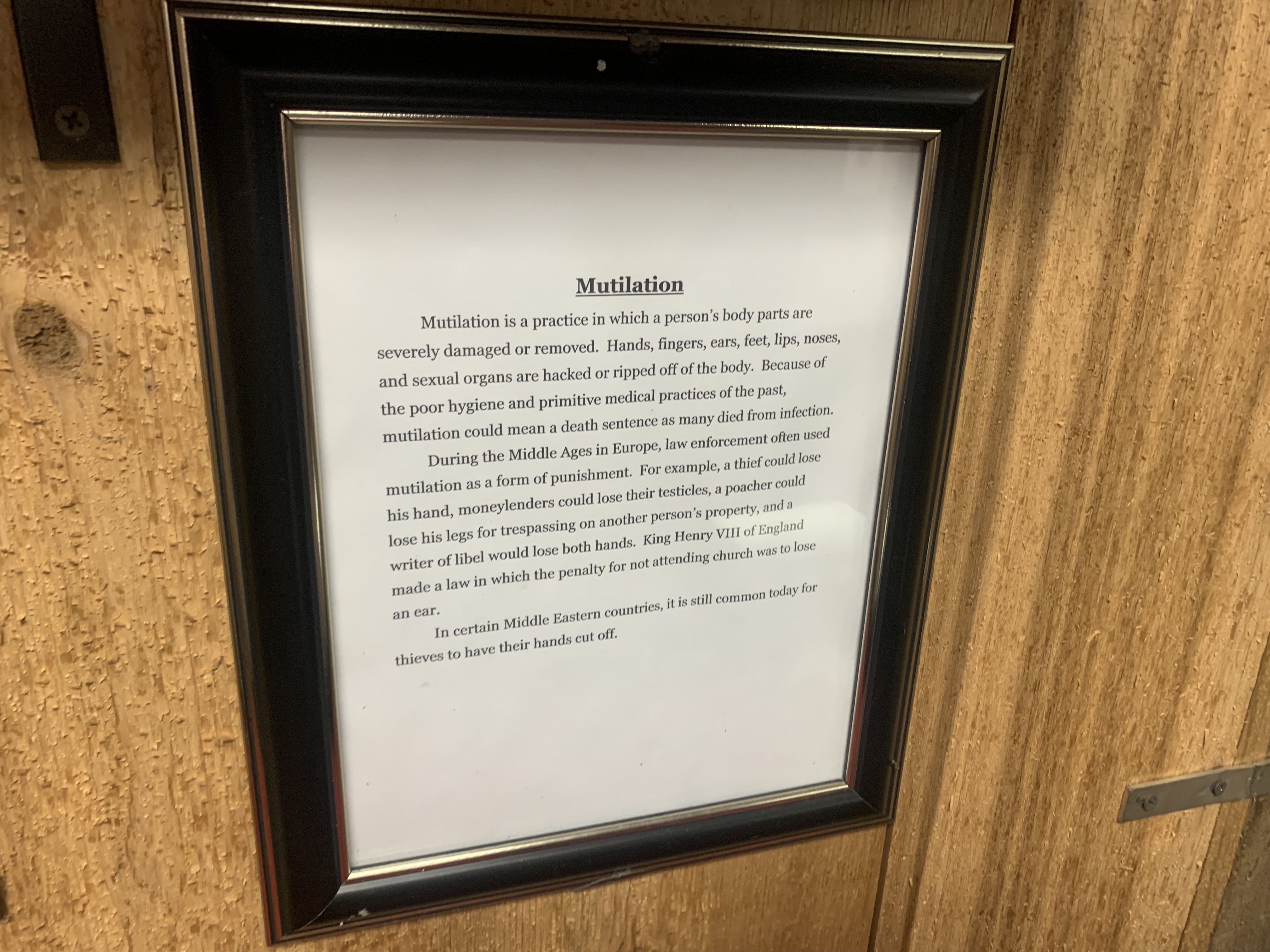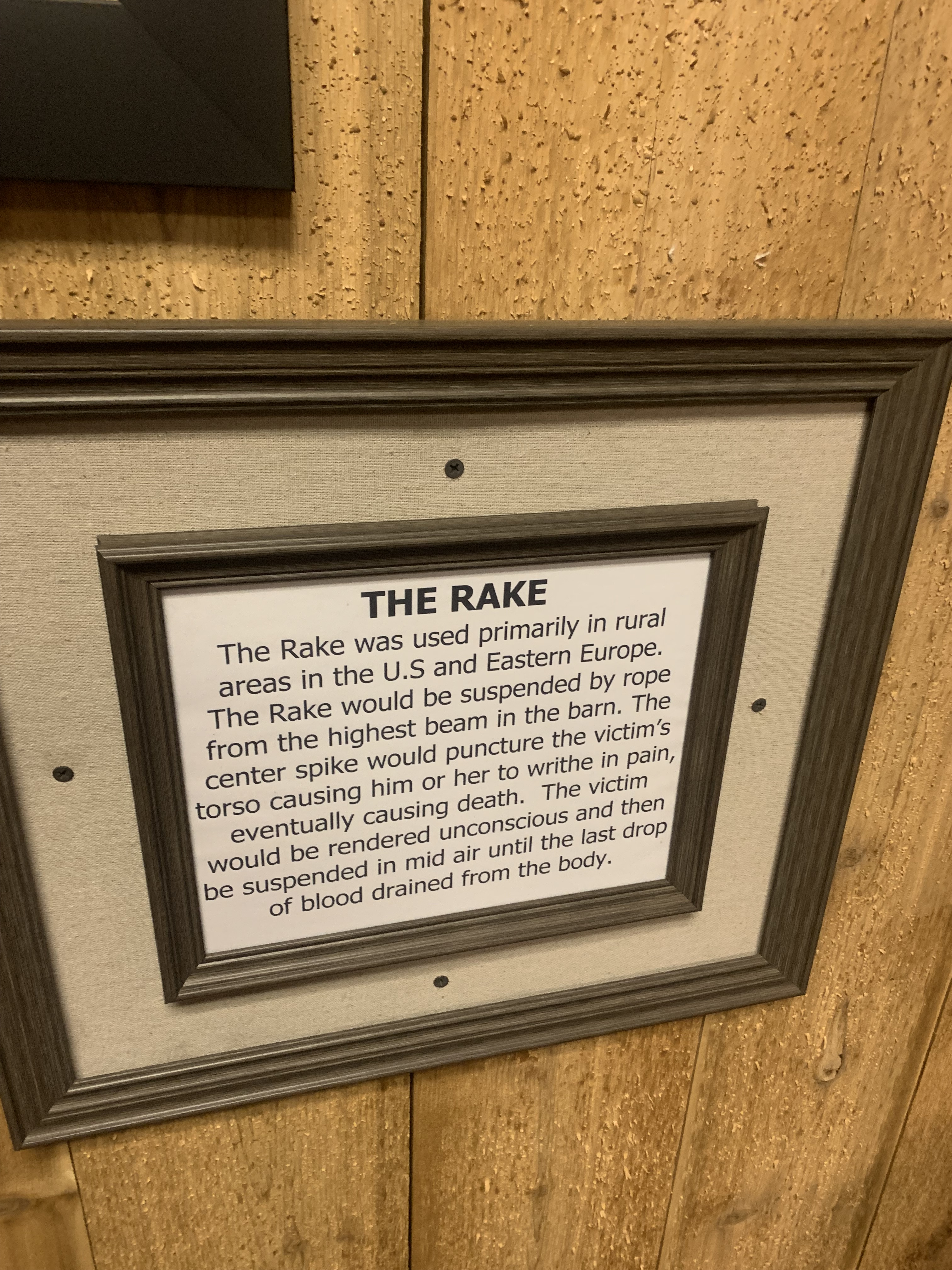 Here are the photos I took of the torture devices and their descriptions:
