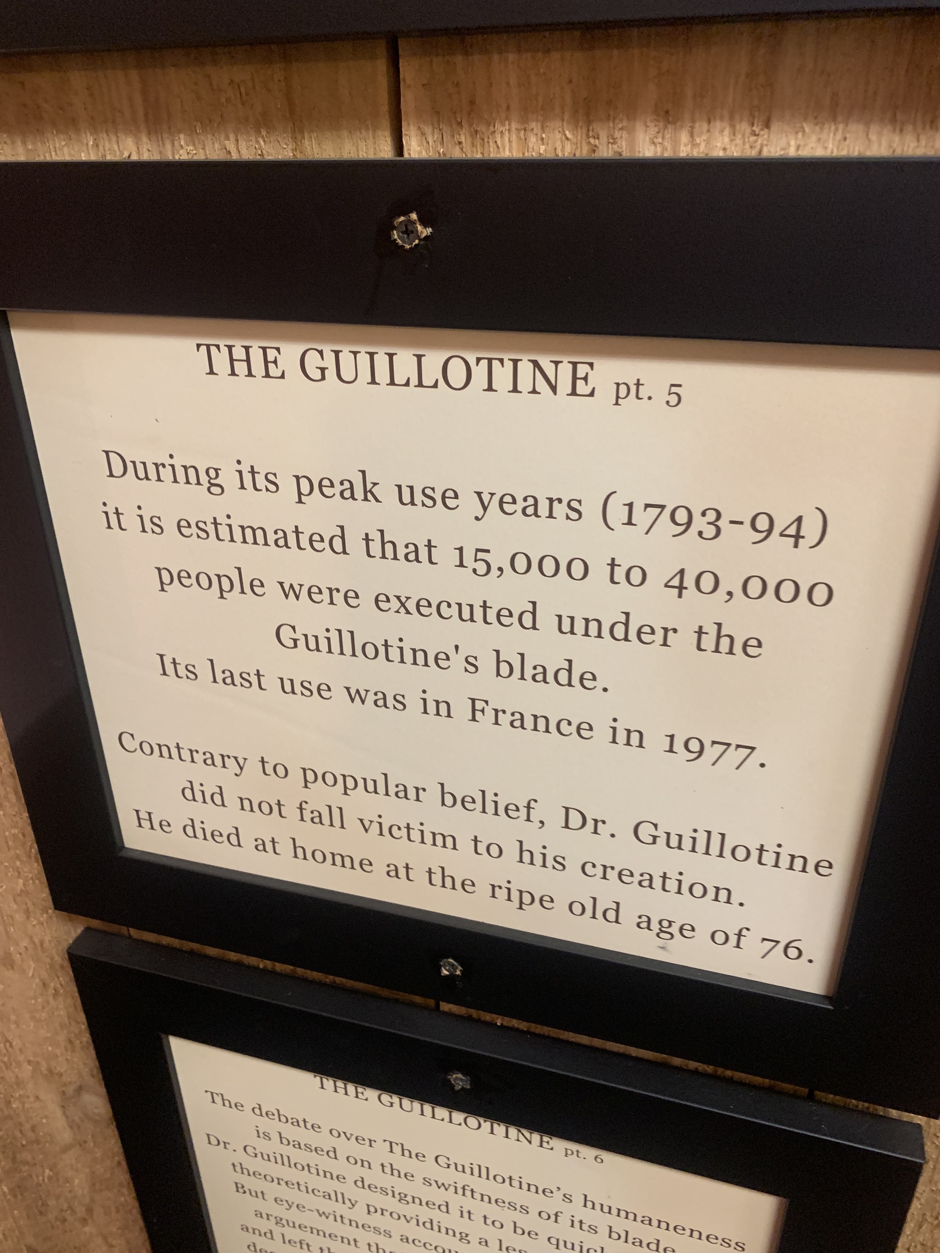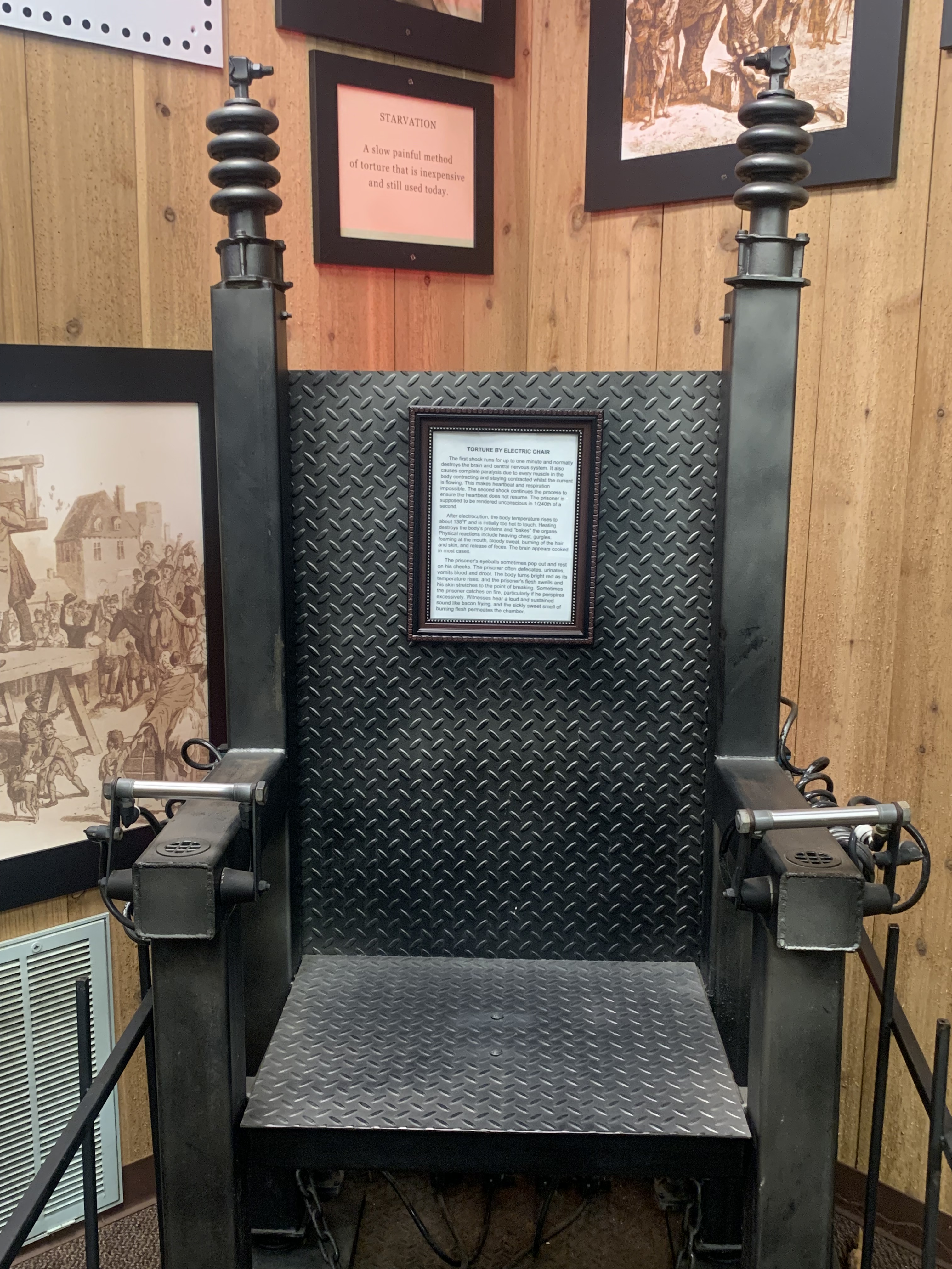 Interestingly, the Museum had the electric chair, but I think it is time to add another one to the list that is still in vogue today in the United States: lethal injection. Given how many botched executions have occurred because states are often using the wrong combination of drugs or dosage (owing to the difficulty in obtaining them), it amounts to torture and cruel and unusual punishment in my estimation.