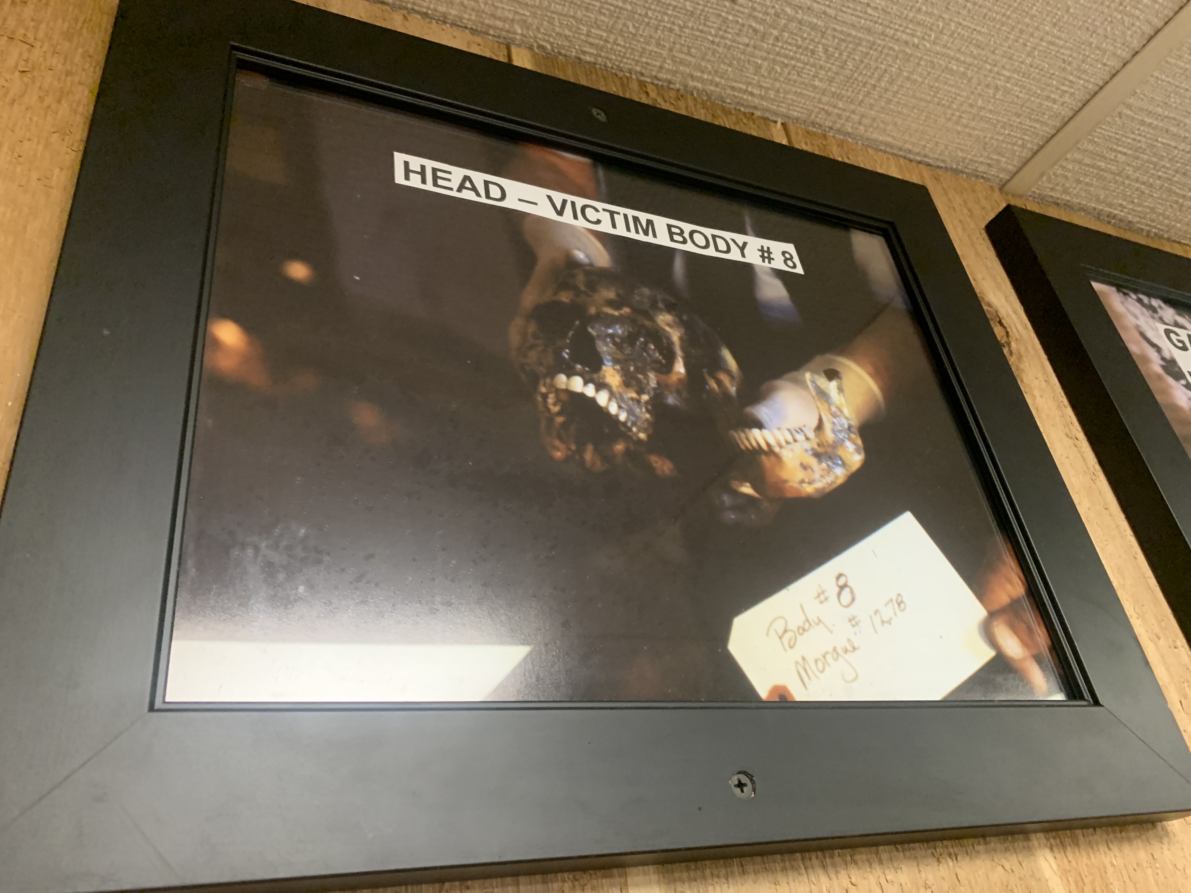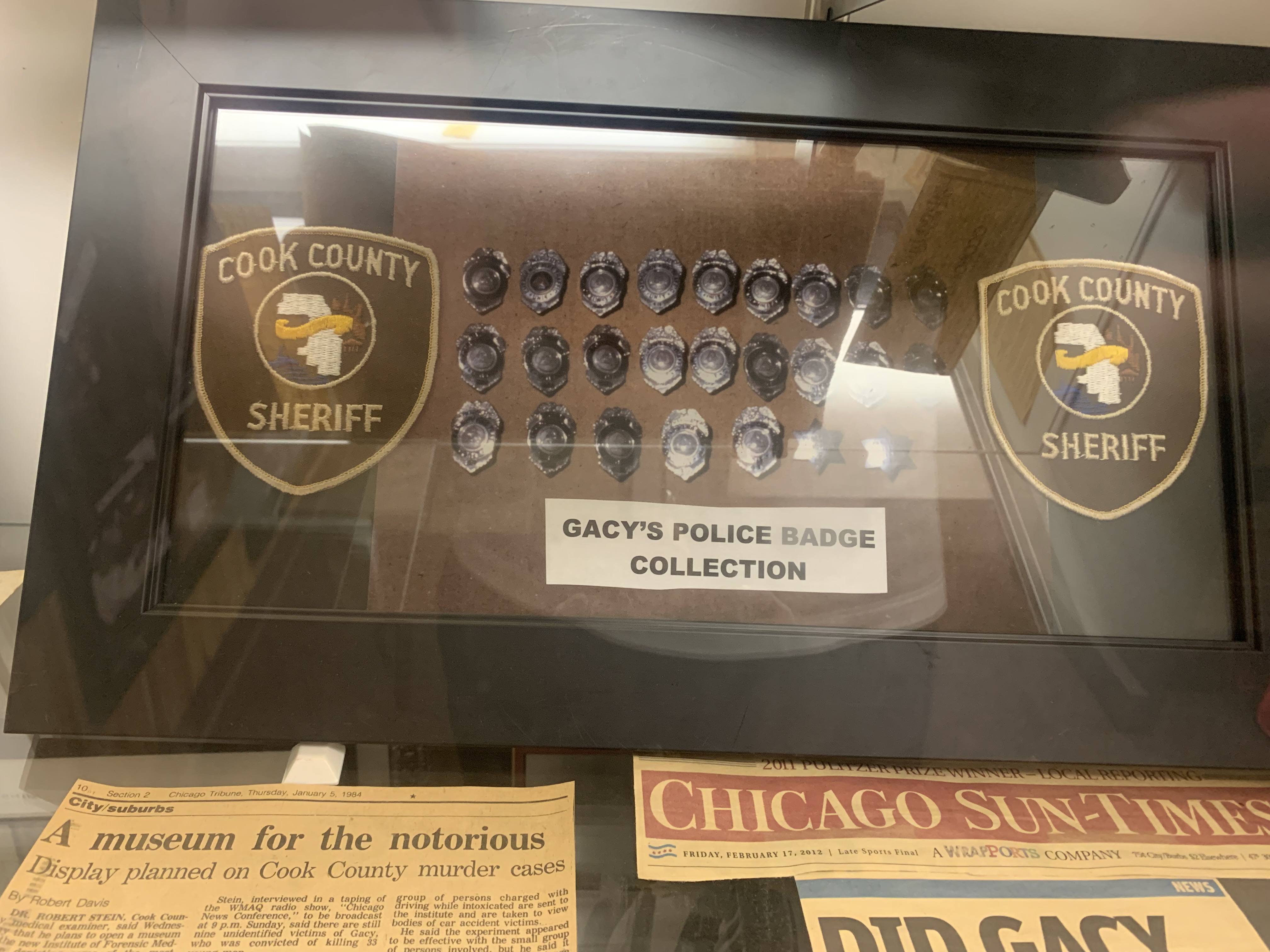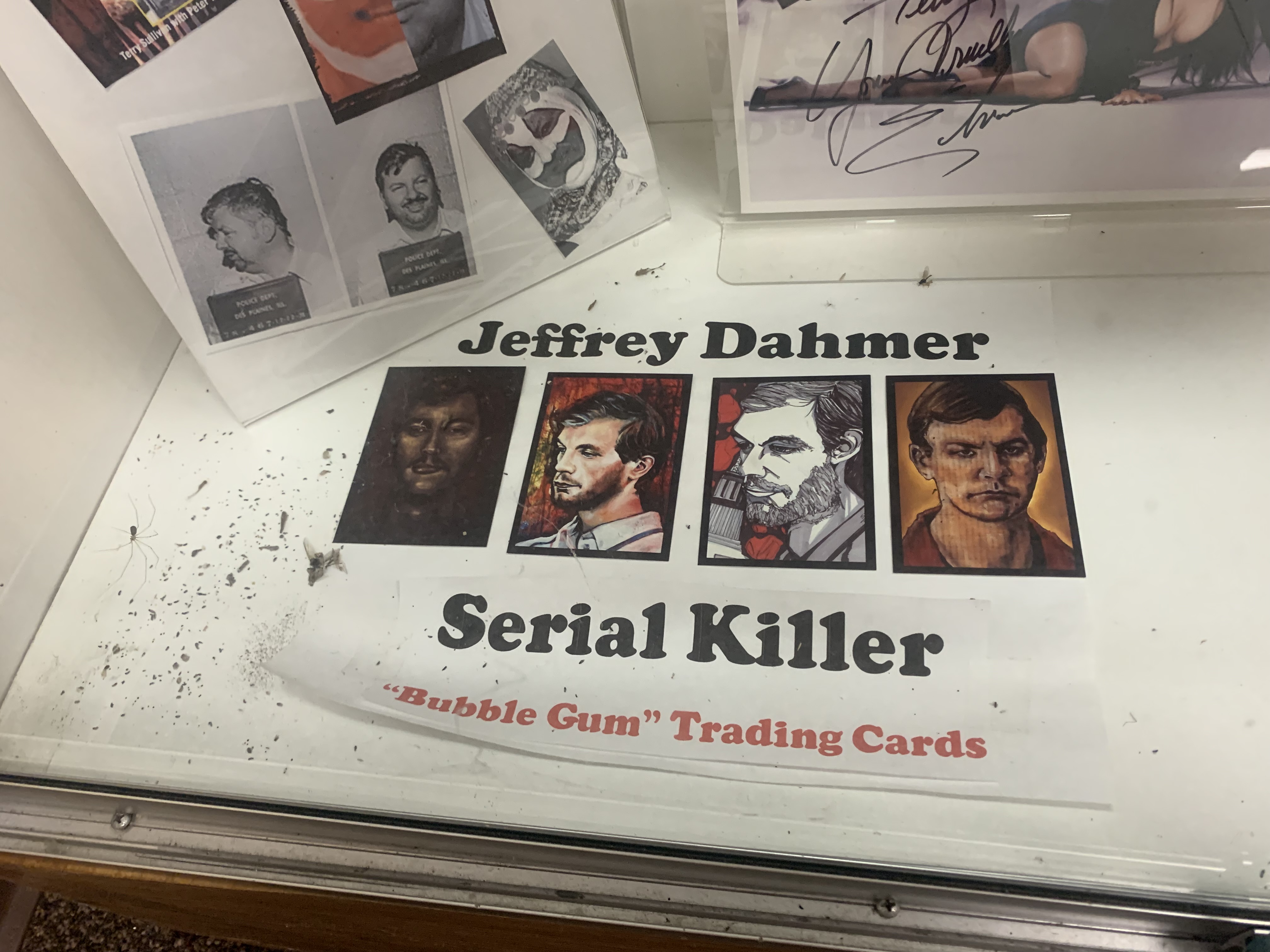 Gacy was a clown in his day job, and a serial killer and sex offender at night, raping, torturing and murdering at least 33 young men and boys in the 1970s. His victims were buried under his house in Chicago in the crawl space. The exhibit at the Museum featured images of some of those corpses recovered (yes, I know I’m really weird), newspaper clippings of his arrest and conviction, and even his infamous paintings of … Snow White and the Seven Dwarfs? The exhibit also featured “Gacy’s Library” and “Gacy’s Playthings.” The former contained a bunch of dirty magazines (some more explicit than others), and the playthings, well, that’s self-explanatory.