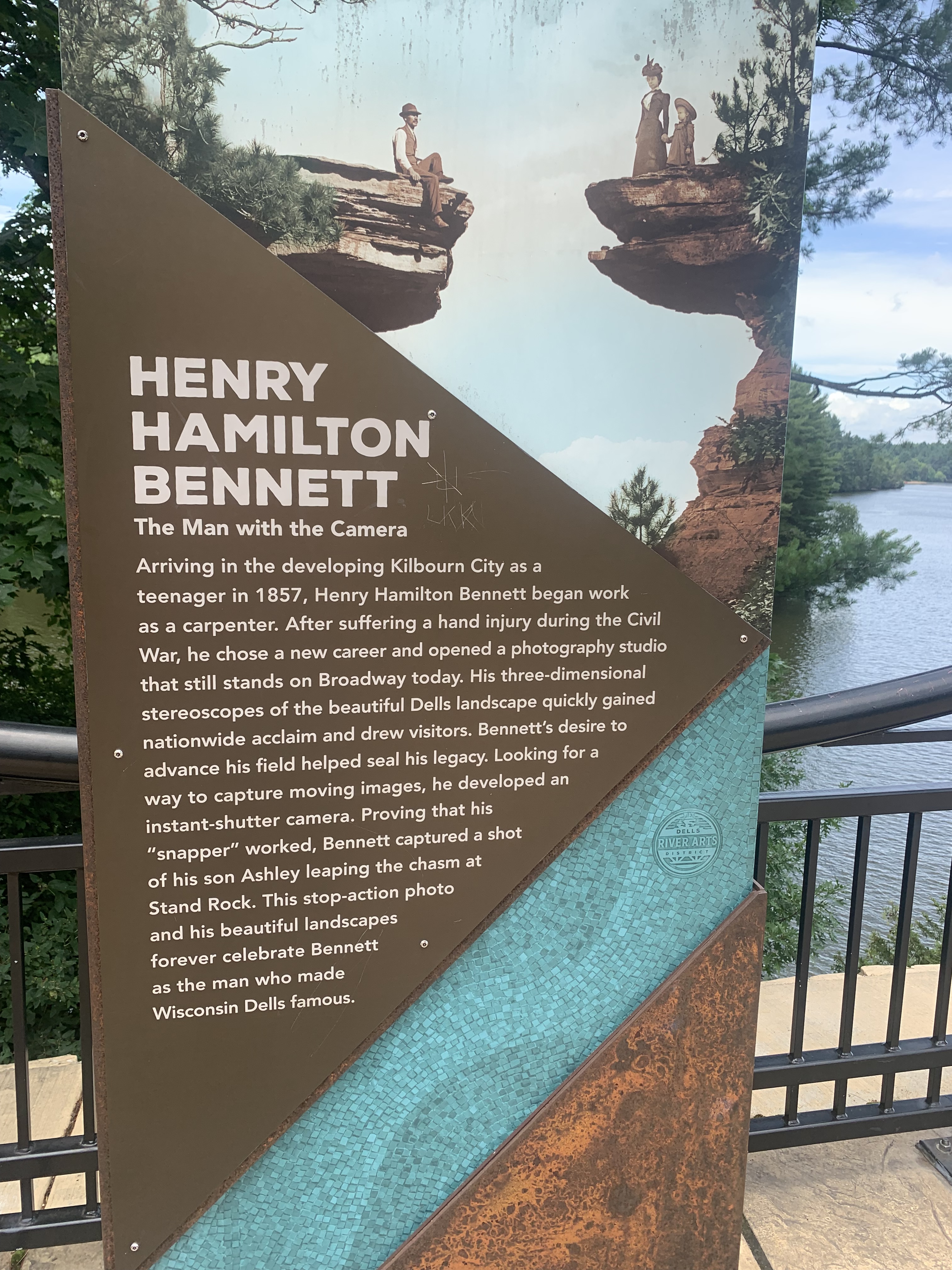 Prior to being known as Wisconsin Dells, the area was called Kilbourn City after Byron Kilbourn, president of the railroad. H.H. Bennett, and his son, Ashley, made the area famous and a must-see tourist spot that takes in more than a billion dollars these days, wherein the name of the area would be changed to the Wisconsin Dells by 1931 to capitalize on tourism.