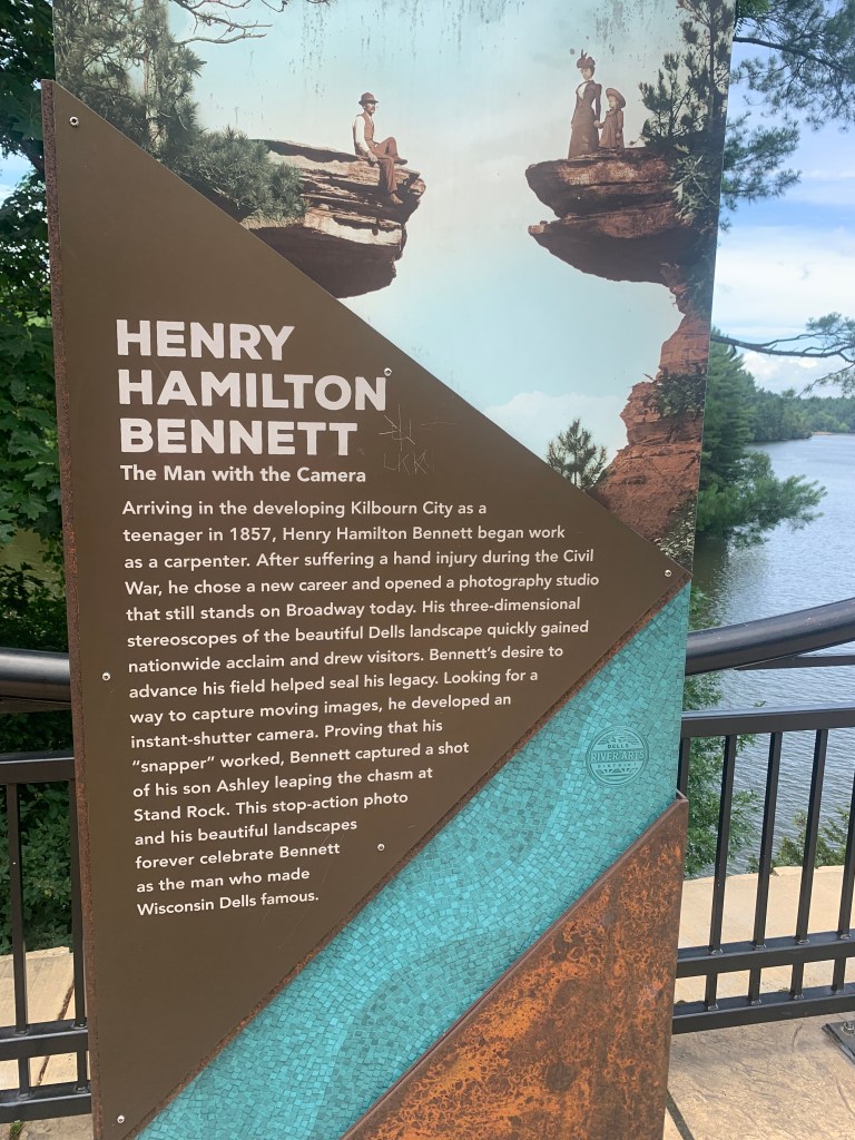 Bennett served in the American Civil War, but was wounded, and so, after the war, he took up photography. The area with its river, gorge, sandstone formations from glaciers, and bluffs made for some of the most beautiful, breath-taking landscape photography the country had seen at the time. Perhaps his most famous image is the one of Ashley leaping across Stand Rock, which he made Ashley do numerous times to get the right shot. I’ll have more on Stand Rock in another post.