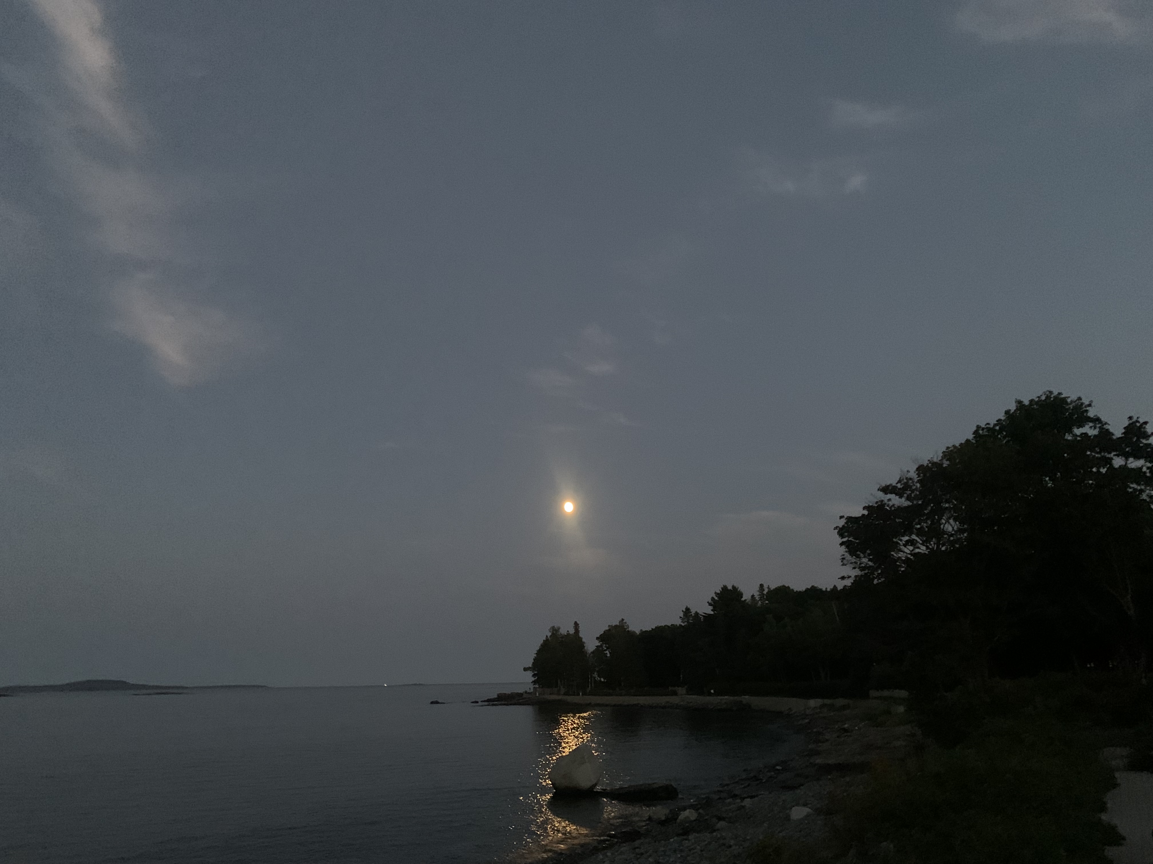 A picture of the moon I took at Bar Harbor, Maine tonight. More on my trip to Maine to come. For now, an original five-line poem.