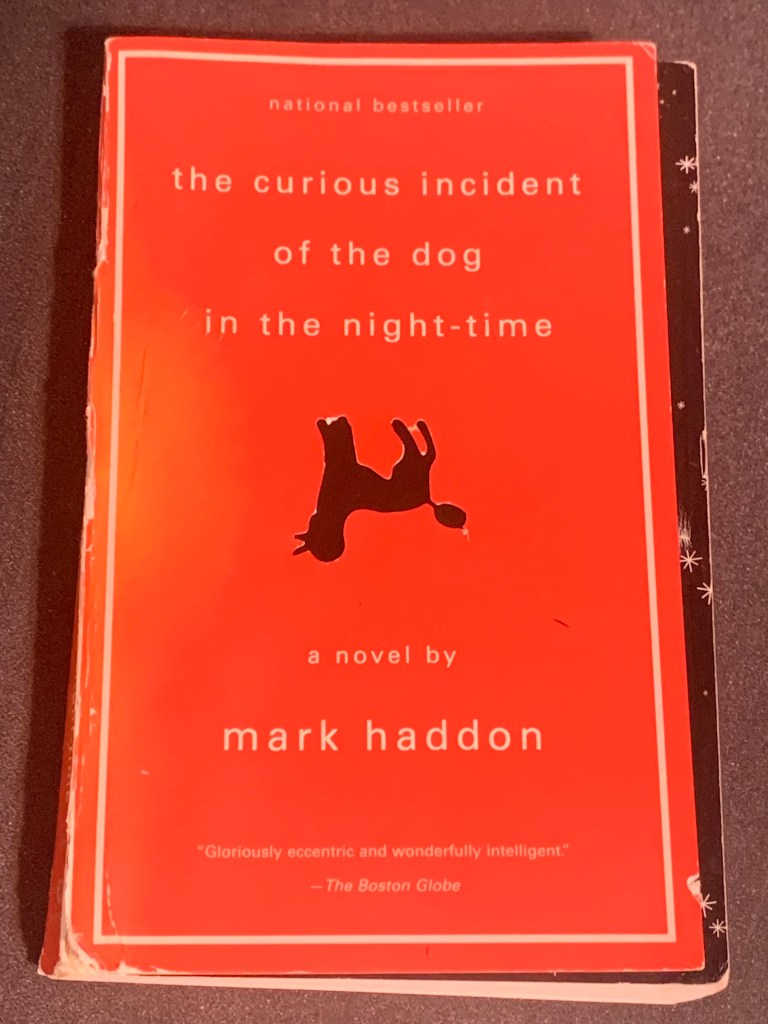 Haddon’s book, which is really Christopher’s book — Christopher is writing a book on the advice of his schoolteacher because Christopher likes projects — has a blunt opening. He finds a neighbor dog, Wellington, dead with a garden fork sticking out of it. He likes dogs and people who have dogs mean they are good people. Or at least, it’s another one of those approximations of goodness (I tend to agree!). Christopher decides his book will be a murder mystery because people like those, and so, he will be a detective and solve Wellington’s murder. Unfortunately for Christopher and his family, that begins an unfurling of deeply buried family secrets that reflect back upon him. or rather, those who ostensibly love him.