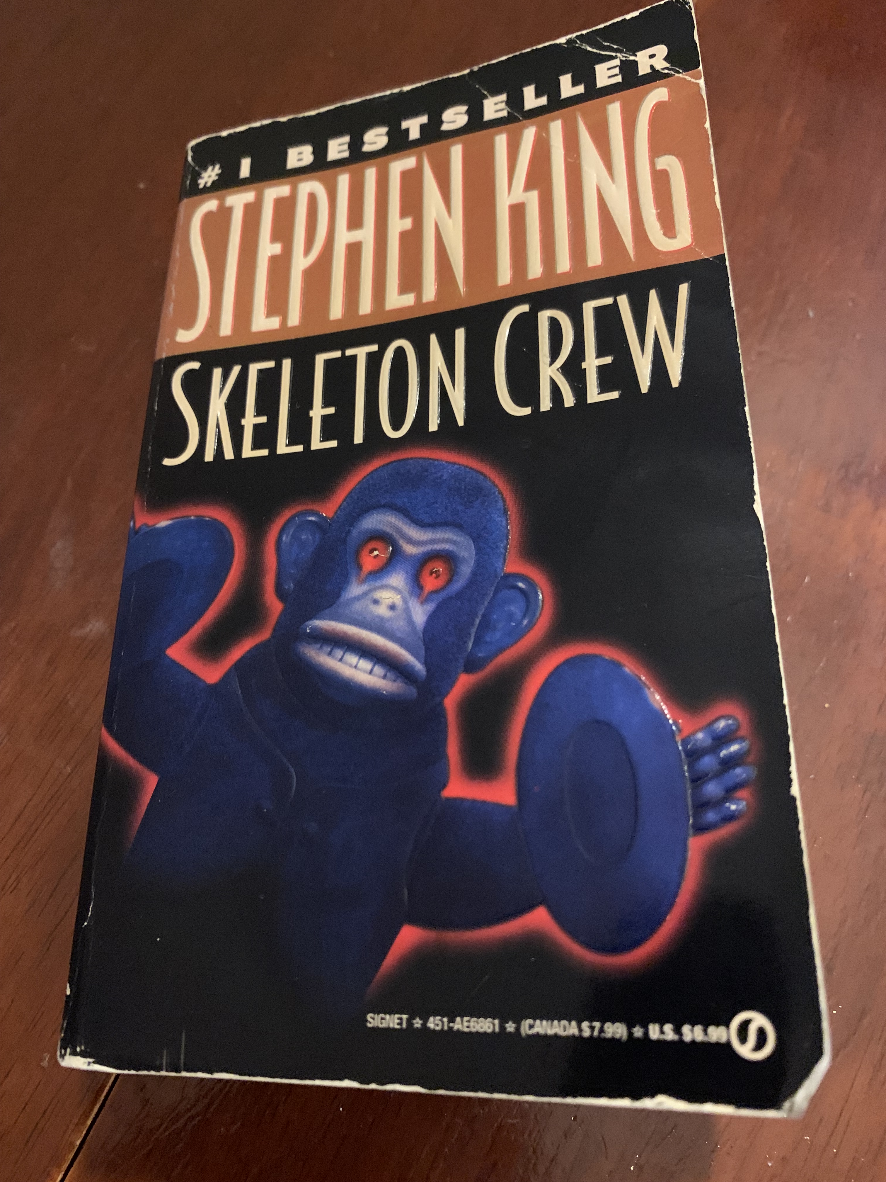 We all have a monkey playing the cymbals in our head, clanking away. Some of us just hear it more clearly, or tune it out better, as it were. Stephen King taps into that madness, that “flexible bullet,” as he calls it, in his 1985 short story collection, Skeleton Crew. King admits in his Introduction that writing short stories is a harder game only growing harder β and he ought to know given how long his novels tend to be β how hard it can be to catch the brevity lightning. With short stories, you need to punch in and out quickly. For the most part, King achieves brevity with his short stories, save for incidentally, his most recently written one in 1983, “The Ballad of the Flexible Bullet,” which I thought went perhaps 20 pages too long. In Skelton Crew, he has one short story he wrote at 18 (“The Reaper Image”) and the aforementioned most recent one written when he would have been 36. The reason he likely mentioned that is because all writers, even those intent on writing novels, have always tried their hand at the short story whether at 18 or 36 (after much success, no less!) because it is hard and in the difficulty is the allure.