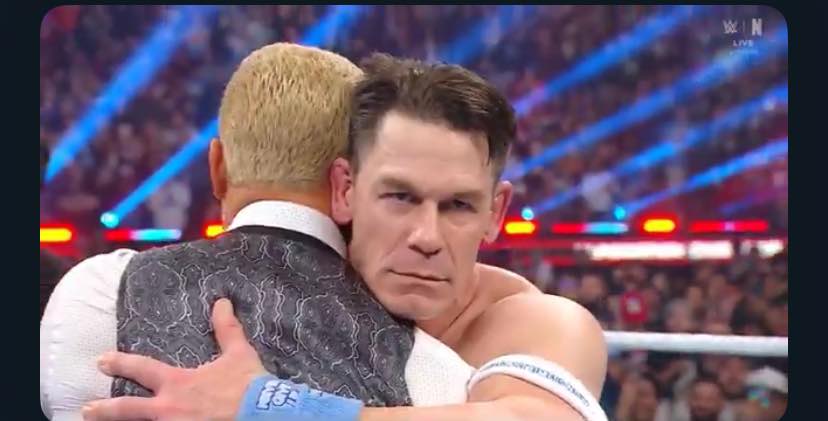 At WWE’s Elimination Chamber event in Toronto, Canada tonight (which, funny aside, the crowd booed the “Star-Spangled Banner” tonight, rightly so), John Cena was one of six competitors in the Elimination Chamber match, along with Logan Paul, CM Punk, Drew McIntyre, Damien Priest, and Seth Rollins. Thanks to Seth Rollins’ continued beef with CM Punk, John Cena won the Elimination Chamber match. That means John Cena is guaranteed a main event match against Cody Rhodes, the WWE Champion, in the main event of WrestleMania 41. Shortly after winning, Cody Rhodes, today’s current ultimate babyface, came out to do a face-to-face with John Cena and to answer Dwayne “The Rock” Johnson’s proposition to him from a week ago. A week ago, The Rock asked for Cody’s “soul.” If Cody surrendered his soul, The Rock would give him “everything,” whatever that meant. Cody Rhodes, in an astonishing line to utter unbleeped even on a live premium live event, told The Rock, “Go fuck yourself.” Cody stayed a good guy. But John Cena, who was still out there, hugged Cody with a mean mug on his face and turned on Cody. John Cena turned heel! John Cena went bad! John Cena sold his soul! The extra context here — aside from being the ultimate good guy for 20 years; this is tantamount to Captain America turning and saying, “Heil Hydra!” — is that John Cena is a 16-time World Champion. That ties him with the record. He wants his 17th World Title. He’s desperate in his last year after losing this year’s Royal Rumble match. So, his “turn” makes sense (in addition to the further context that Cena essentially apologized to The Rock for not understanding his turn to Hollywood), but it was still astonishing. I’m shook, as the kids say.