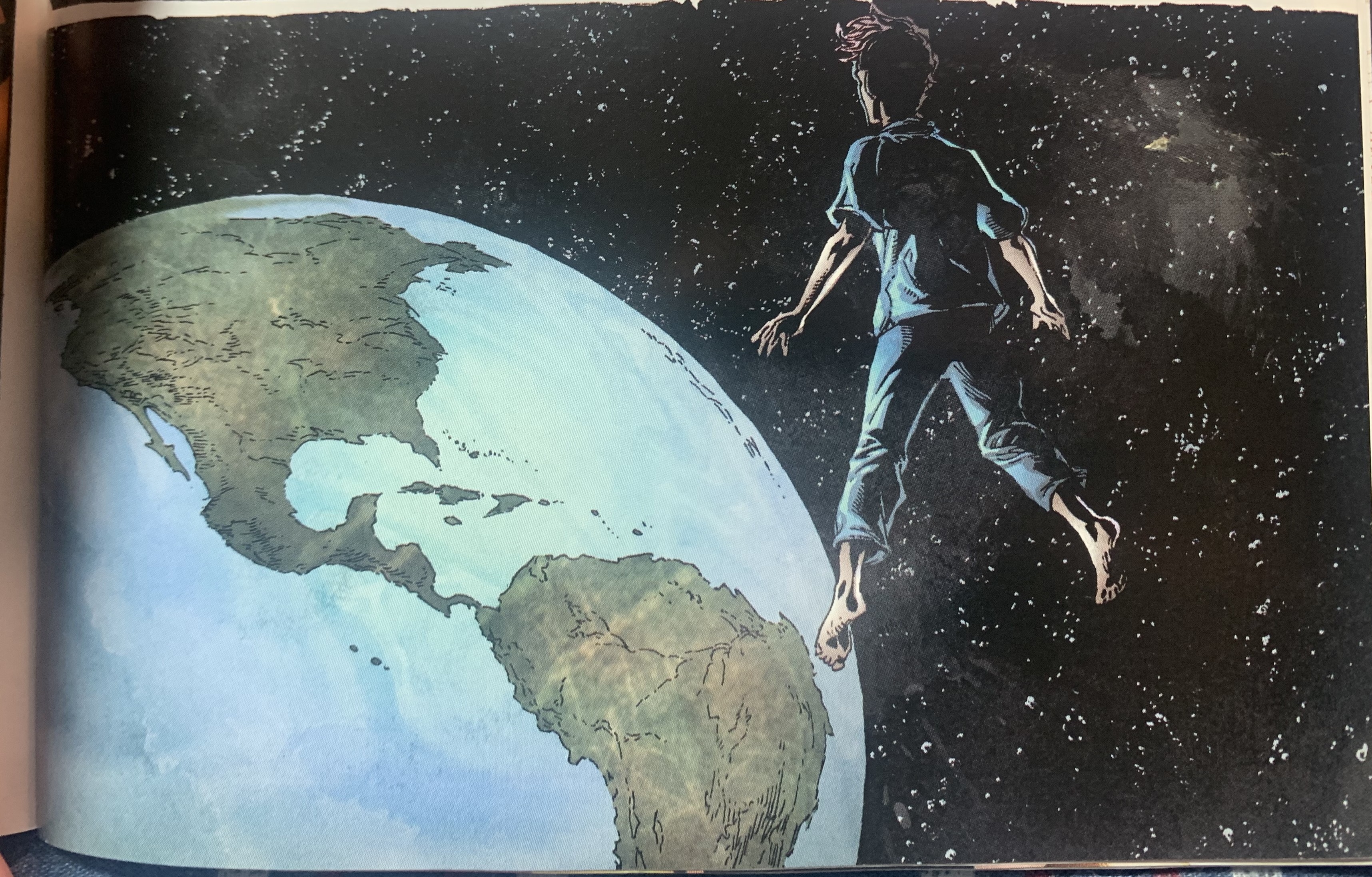 Where this volume leaves us before Volume 2: Powers & Principalities, is the government unsure about Joe, the spaceship-imbued god, and Mark floating in space thinking about his “objective alien” line and putting his entire hand (from his distance in space, it appears so) over the earth. What a striking image that was.