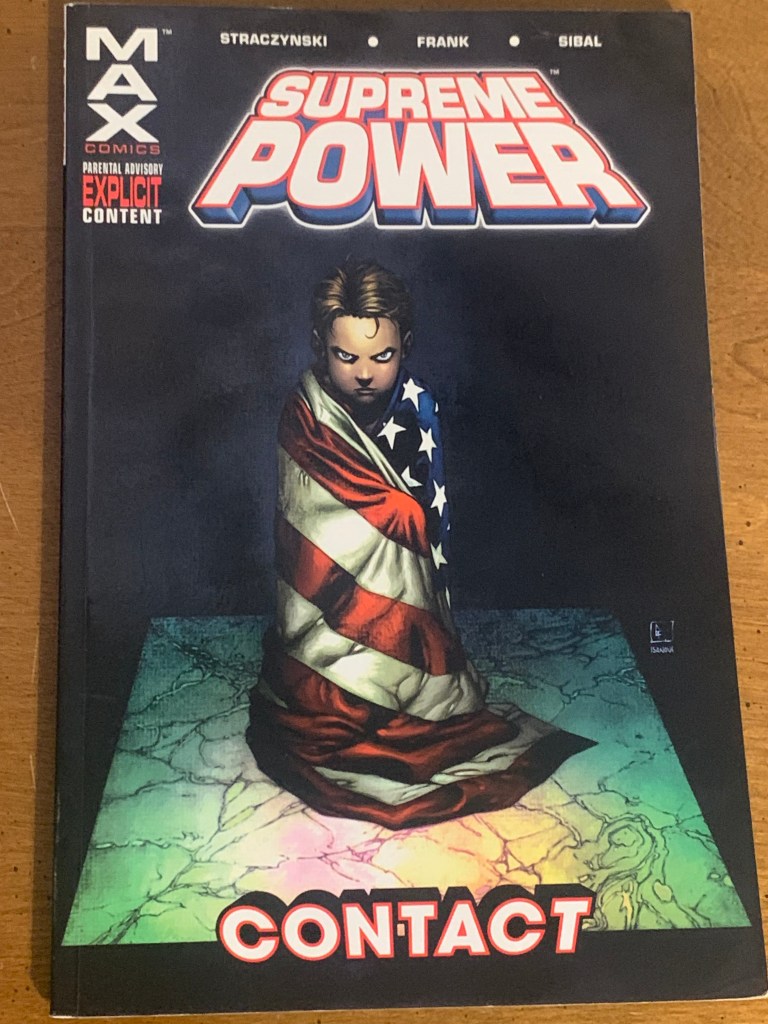 What if Superman grew up in a government lab with a carefully curated upbringing through focus group research and government-contracted parents? Writer J. Michael Straczynski and Illustrator Gary Frank imagine just that in Marvel’s 2004 series (through its imprint, Max Comics), Supreme Power, Volume 1: Contact. Jon Sibal adds his beautiful ink to the imagining. But no matter how much you try to bring Kansas and Jonathan and Martha Kent to a lab, there’s no duplicating the real thing.