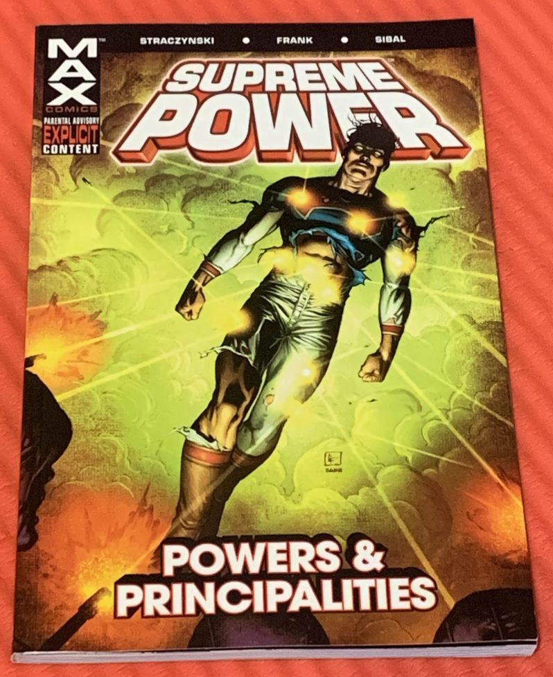 Ubi dubium ibi libertas is a Latin proverb, meaning, “Where there is doubt, there is freedom.” Of course, if your idea of freedom is the obliteration of the human race, then our concepts of “freedom” differ. But the original intent of the proverb holds: when one questions what they’ve been told, that seed of doubt could be the blossoming of freedom. Where I last left off with Marvel’s 2004 series Supreme Power, through its imprint Max Comics, is Mark Milton of the Hyperion Project, a Superman-like figure, beginning to question the government’s carefully curated citizen-making of him. In the 2005 follow-up, Powers & Principalities, his doubt blossoms into full-blown, godly, destruction. Writer J. Michael Straczynski and illustrator Gary Frank, with Jon Sibal’s striking ink, go darker in the follow-up. Where the first collection was self-referential and comical in parts with an undercurrent of levity, Powers & Principalities has no time for that. A godlike alien being is doubting his government handlers — that, and much more besides, threatens the existence of every human in the world.