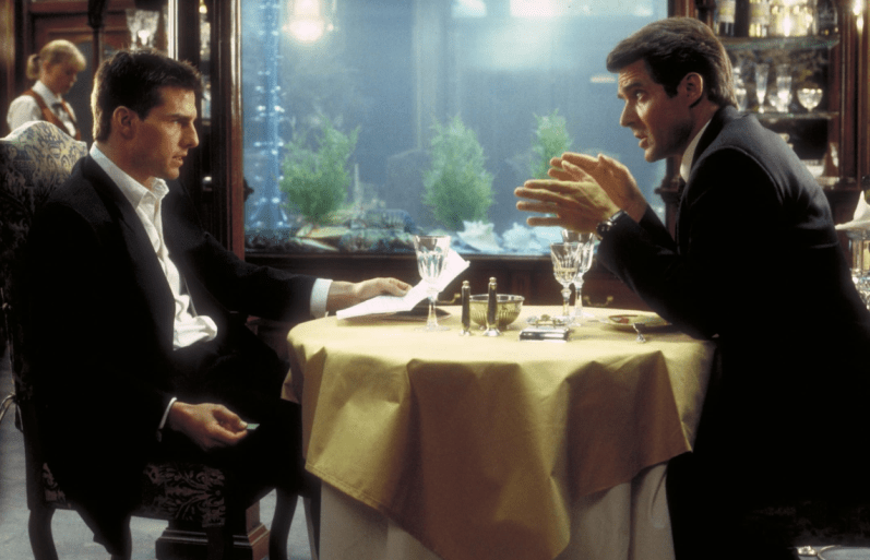 The films, of course, concern the missions of the Impossible Mission Force, a deep off-the-books agency, hence the Secretary of the IMF always ready and willing to “disavow” knowledge of any agent captured or killed, with Ethan Hunt as its main agent (played by Tom Cruise). Hunt and the IMF are essentially an American version of James Bond: They have fun high-tech gadgets, including most famously realistic mask and voice disguises so they can impersonate people, and the stakes are often world-threatening.