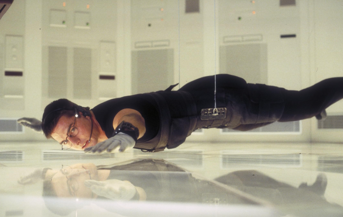 - Hanging! The classic hanging in the first film, where Cruise is dangling from the ceiling from wires inside the CIA only inches from the ground, is repeated in different ways in the two films after and then Jeremy Renner’s character, Brandt, does it in the fourth film. I don’t believe they callback to it after that.