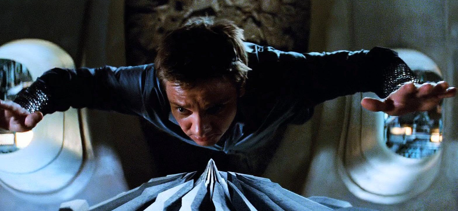 Directed by Brad Bird, I knew this one was going to be incredible because he did two films in the conversation for the best of the 21st century before this: 2004’s The Incredibles and 2007’s Ratatouille. He’s the Pixar guy! But he’s also the guy with not only the best outing for the series up to this point, but also the first to not feel stuck in a particular time. You could watch this film made 14 years ago and it holds up just fine in 2025. I credited McQuarrie for the self-effacing and levity, but Bird actually starts it here. For example, the message for Hunt that usually self-destructs in five seconds … malfunctioned and didn’t self-destruct! Fun little gag. I even made a note that this was the first film in the series to not take itself as seriously. This one also got back to feeling more spy-y, with perhaps still my favorite use of spy gadgetry to date in the series: When Hunt and Benji are trying to infiltrate a building, they need to deceive the guard on duty, so they use a quasi-invisibility cloak mechanism. It is so cool! This film also features Cruise’s famous Burji Khalifa climb in Dubai (the world’s tallest building). If you don’t have sweaty hands watching that scene, you’re dead inside or a sociopath. Visually, one of the most compelling images, too, is when Cruise is running (running!) through a sandstorm. It looked incredible. Interestingly, this one barely featured our boy Luther, who only briefly showed up at the end of the film. Finally, it’s worth noting that Jeremy Renner’s character, Brandt, debuts here and definitely seemed like a Cruise/Hunt replacement, if Cruise stopped making the films, hence the dangling callback pictured above. Obviously, that didn’t become necessary. If it didn’t seem clear by this point, Ghost Protocol was my favorite of the series so far.