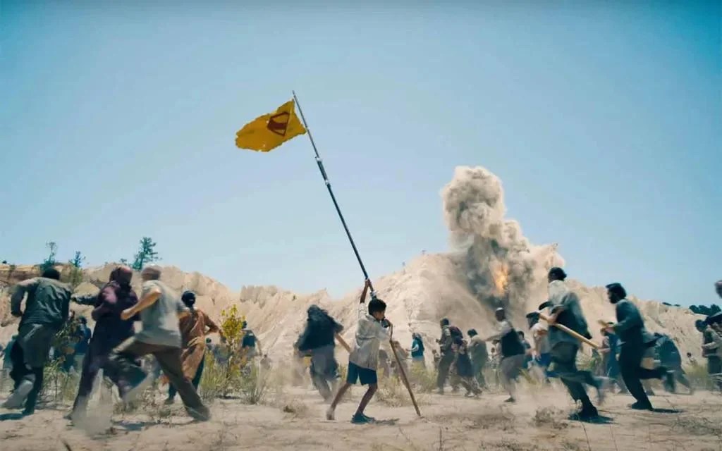 Then, while still at the farm, Clark sees on the television that Boravia is going to invade Jarhanpur again. Thanks to LuthorCorp’s arms, Boravia is a well-equipped modern military while the people of Jarhanpur are essentially tribes people with the equivalent of sticks and stones. In the most aspirational, tear-inducing scene of the film, a small boy hoists up a Superman flag and all the people start chanting for Superman. Gah. That’s everything that makes me love Superman. I’m getting goosebumps just reliving it in my head. Unfortunately, Superman is also split, pun intended, by the need to stop the black hole rift that is tearing through Metropolis created by Luthor to lure Superman out. Thankfully, the Justice Gang, with the help of Metamorpho, arrive to save the people of Jarhanpur (Hawkgirl unceremoniously drops the president of Boravia to his death, admitting she isn’t like Superman) while Superman battles Ultraman. Ultraman is revealed to be Luthor’s clone of Superman, just dumber, who needs direction like its a video game, to battle Superman. Luthor crows, “Brains always beats brawn!” Of course, my contention with Superman’s depiction in live-action films is that he is far more than just brawn! He can, and should, do more than punch. Gunn gets it, though, because Superman uses “brain” to beat “brawn” by having Krypto chase the “ball” of the drones around Ultraman Lex and his team uses to control him. That effectively allows Superman to defeat Ultraman and then confront Lex to allow Mister Terrific to stop the black hole rift.
