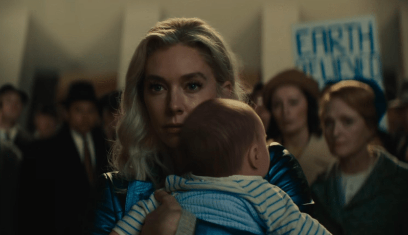 Like with Superman, what I love about First Steps is how lived-in the world feels. This world, known as Earth-828, a nod to co-creator of the comics, Jack Kirby, and his birth of August 28, has known about, and celebrated, the Fantastic Four for four years. The citizens of Earth-828 know about the powers caused by cosmic radiation after the foursome went to space as regular astronauts: Reed already the smartest man on the planet now can stretch his body; Sue can make herself, others, and objects invisible, as well as project invisible force fields as offensive or defensive weapons; Ben is a super strong rock-like figure; and Johnny is the human torch. They’ve already battled a few enemies, and where we start with them is counterintuitive, with Reed and Sue expecting, and worrying, about their first child. Set in the 1960s, but with flying vehicles and superheroes, the aesthetic captured by director Matt Shakman and cinematographer Jess Hall is perfect in keeping with the milieu of when the Fantastic Four was created in the comics by Kirby and Stan Lee. It also means this film stands out more than virtually any other MCU film, owing to the rightful criticism that MCU films tend to all look boilerplate (the lone exception is to be found in television: 2021’s WandaVision). Interestingly, Shakman has mostly directed for TV, including WandaVision, with First Steps only his second feature film. Impressive. Hall’s prior blockbuster experience came with the Scarlett Johansson video game adaptation, 2017’s Ghost in the Shell.