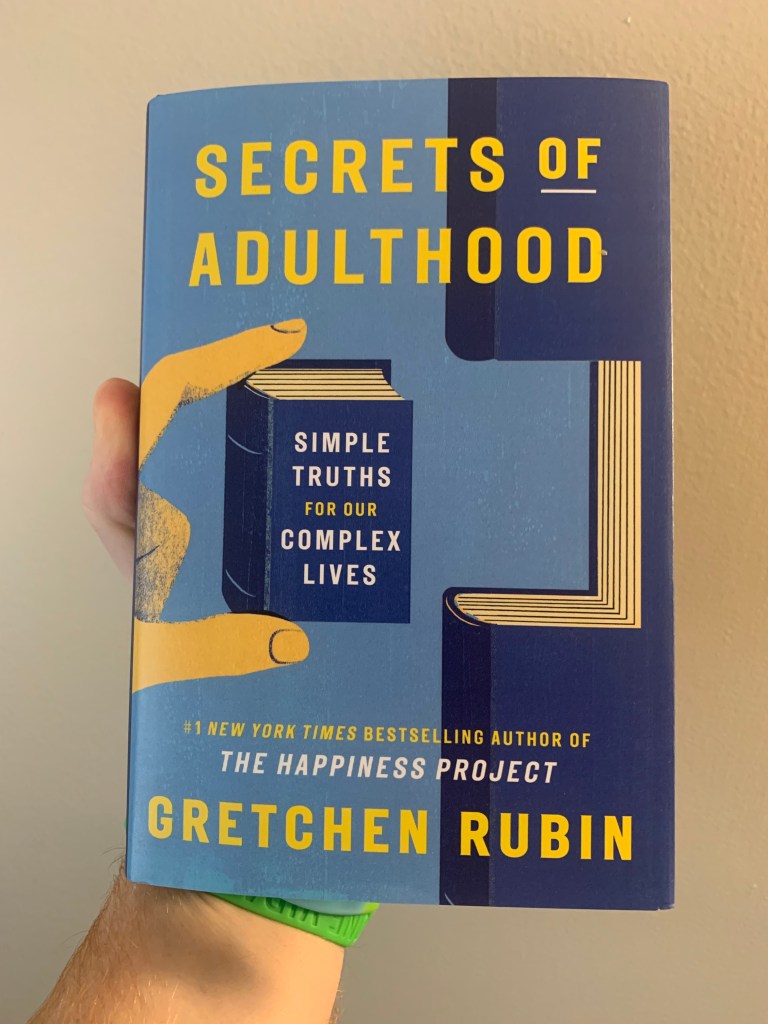 At the end of her book, Rubin offers simple secrets for adulthood that can be applied to daily life. Another way of saying it is, these are her little “life hacks.” What’s funny is how opposite I am from this one, “If you’re dreading a family occasion, bring a guest. Many difficult people behave better in front of outsiders.” While I think the second sentence is sometimes true, the very reasons I may dread a family occasion are also the very reasons I would not bring a guest. Maybe I’m overthinking this one, but it also doesn’t feel right to use a guest, someone you ostensibly care about, as a shield for family drama and dynamics. Similarly, another one I struggle with is, “If possible, have a challenging conversation while walking.” I don’t know why, but I’ve always been someone who needs to be in the right setting and mindset to have those challenging conversations and sometimes walking doesn’t feel right. I can definitely say over the phone doesn’t, either. Depending on the severity of the “challenge,” I’d prefer the conversation to be in-person.