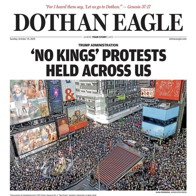 True, Trump is not a king (and no, the argument that he won a democratic election is not a sufficient refutation, either, as would-be authoritarians, of which Trump is one, have taken that path as well), but the whole point of the No Kings movement, which slots nicely into the very American creed of opposing monarchies and federal government overreach, is to prevent a would-be authoritarian from becoming a king. Trump, as a would-be authoritarian, is amassing power and wielding power that, for all intents and purposes, would make any king of the past envious. Congress is feckless, as he misappropriates their Congressional-directed monies as he sees fit or ignores the laws they’ve passed he disagrees with. The Supreme Court is acquiescing. And where the lower courts stymie Trump, he flouts their judgments. I could go on and on and on and on about what he’s doing with power unfortunately given to the executive branch over the last few decades and beyond even that scope. But I think the simple retort is easy enough: You protest before you can’t legally protest anymore. Obviously.