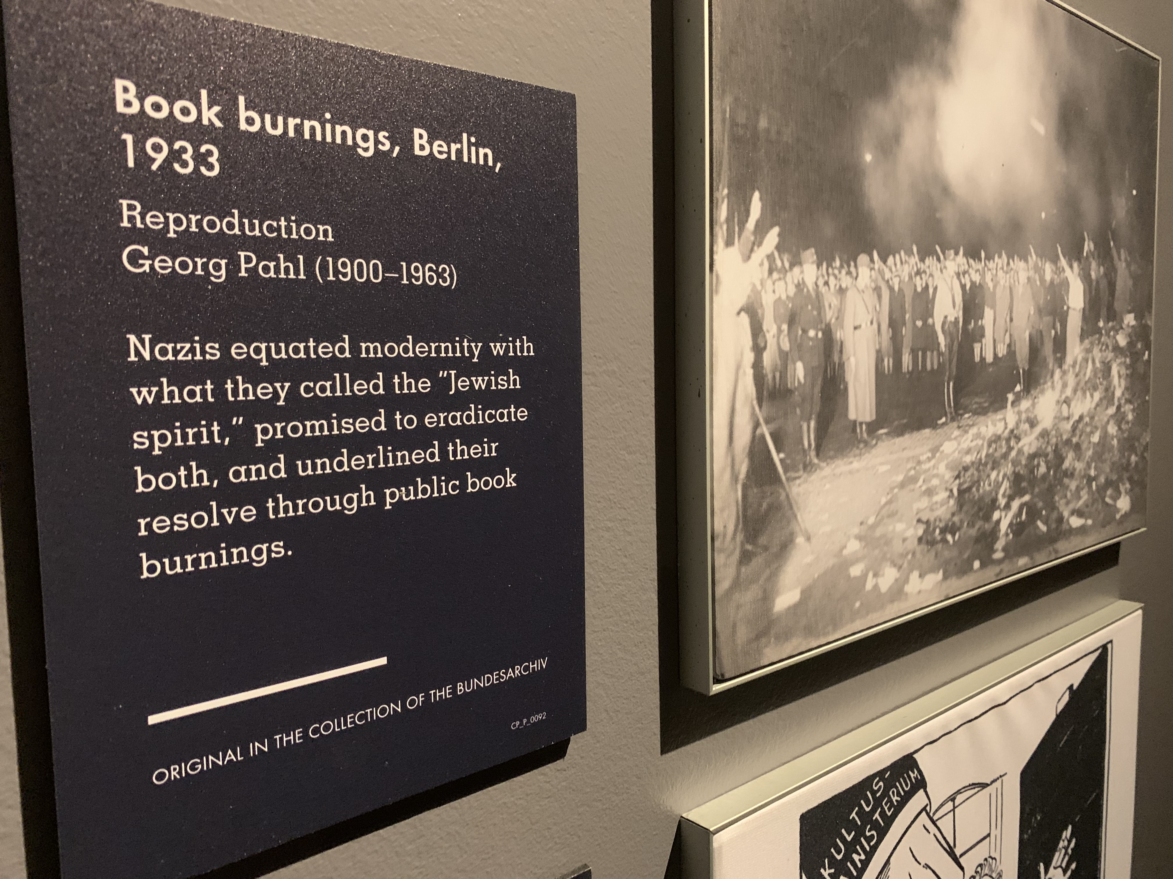 Such openness became unacceptable, of course, under Nazism because of their distorted ideal of masculinity. It’s so interesting how many would-be authoritarians and actual authoritarians throughout the years have not only rose to power on the basis of stirring up nationalistic hatred and fear, but their authoritarianism is tied up into a distorted view and understanding of masculinity. Indeed, as Nazi propaganda featured in the exhibit shows, the Nazis sought to unify the German people around a particular image of themselves and the way forward, one completely extricated from “Jewish influence.” The corollary to having an idealized, propagandized view of the German people, is that anyone who did not meet that standard were marked as undesirables and the German state must rectify that. So, the pogrom against the Jews was preceded by rounding up political prisoners of the Nazis into concentration camps, then the homeless, homosexuals, certainly, those deemed mentally disturbed, and those with disabilities. The Roma and Sinti people were imprisoned because they were considered “genetically criminal,” which is a stigma still associated with them. Those considered communists weren’t immune, either. Finally, one target of Nazi ire I wasn’t as familiar with until today were the Afro-Germans, which are Germans of African descent. One of the featured examples of this was Theodor Wonja Michael, who was born in 1925 in Berlin to a white German mother and a Cameroonian father. He was imprisoned in a camp because of the color of his skin. Inadvertently, as he talks about in a video, it may have saved him from having to join the Hitler Youth, as they wouldn’t accept him. (By the way, again, we talk about the Holocaust not being that long ago, Michael just passed away in 2019.) In other words, whole communities began to be infiltrated and attacked to clear out the “undesirables.” Raimund Pretzel (aka Sebastian Hoffner), a German author writing from exile in Britain in 1938, captured the sentiment: “More unnerving was the disappearance of a number of quite harmless people who had in one way or another been part of daily life. One did not know whether they were dead, incarcerated, or had gone abroad. They were just missing.”
