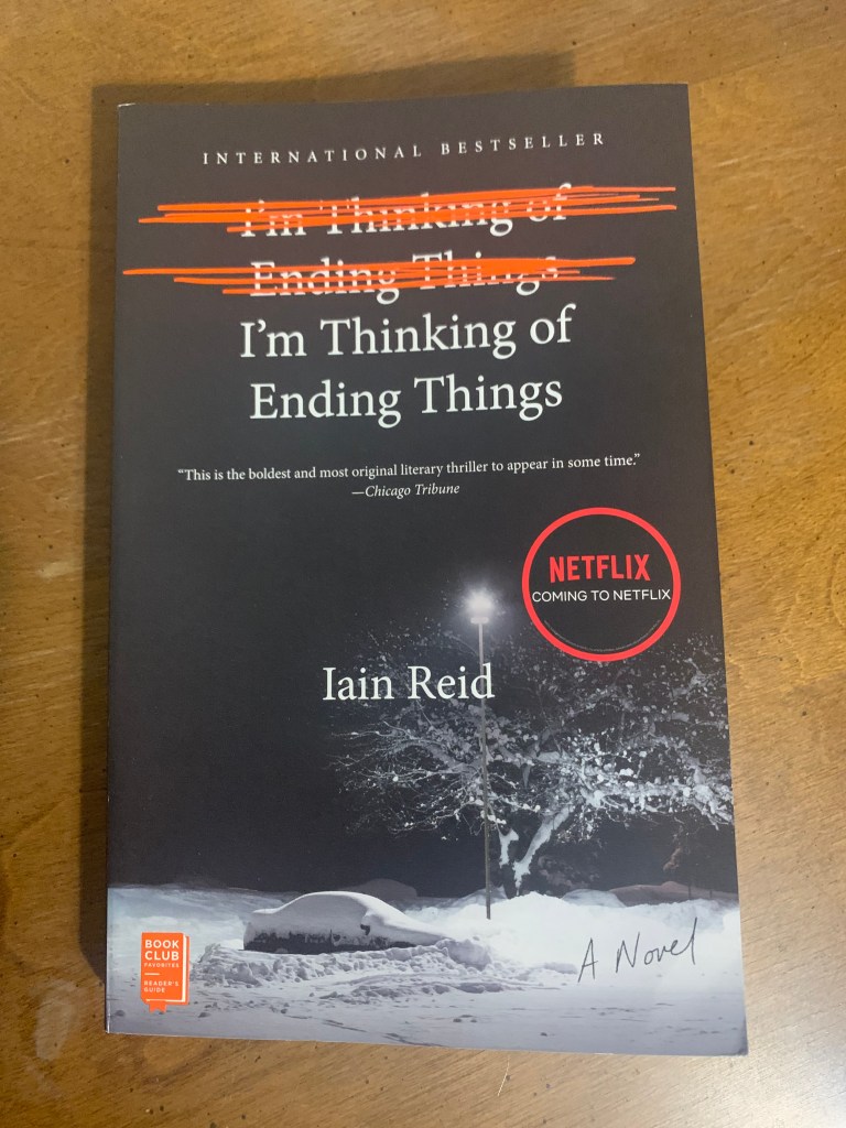 An unnamed woman is on a road trip with her new boyfriend of only six weeks, Jake, to visit his parents at their farmhouse in the country. She opens her narration of the book by saying she’s thinking of ending things with Jake, which makes doing a road trip with him to see his parents an odd choice. Now, going into books as I do without reading the synopsis, I assumed the title was alluding to a suicide, not a relationship break-up. More on that in a moment.