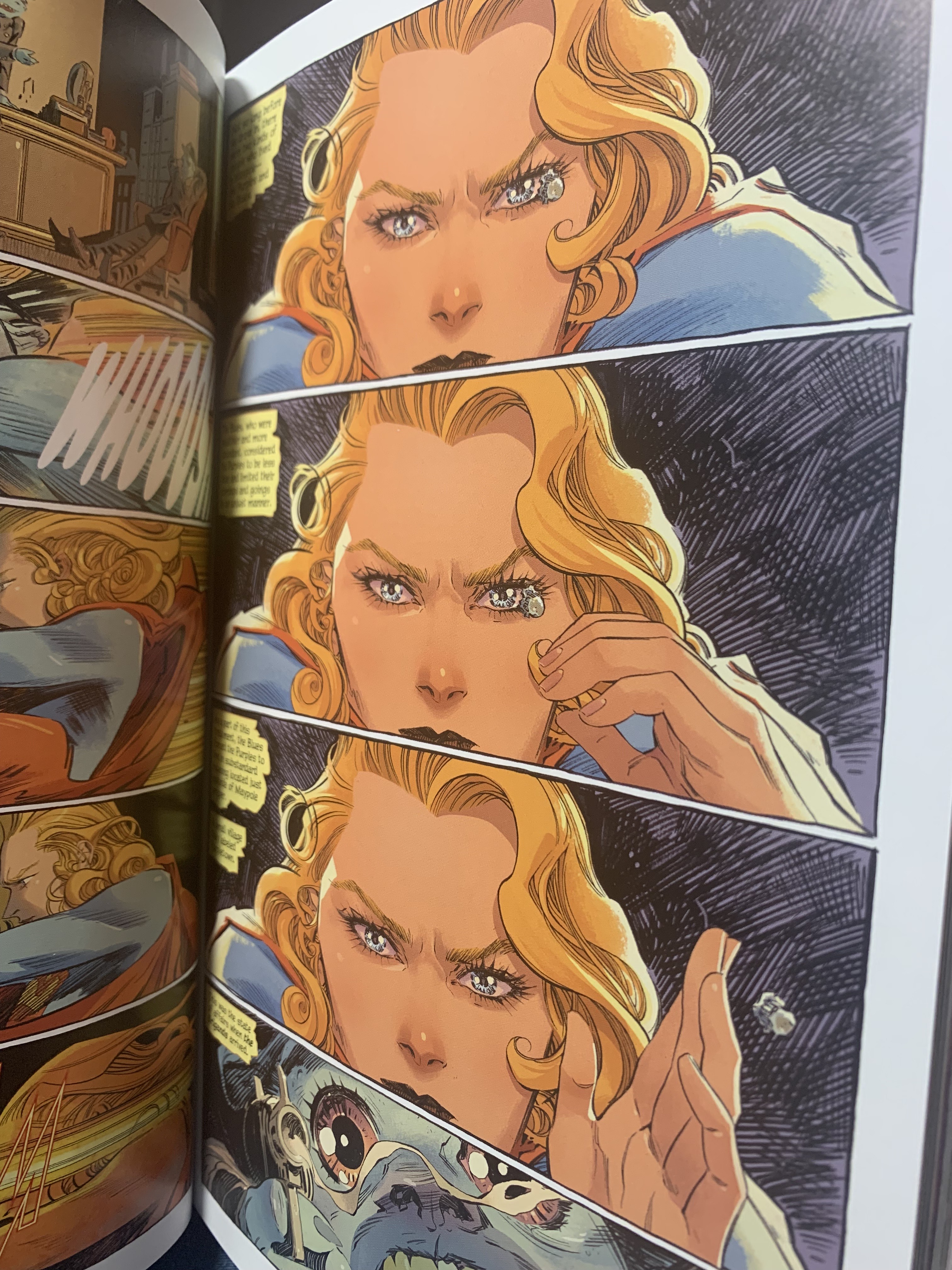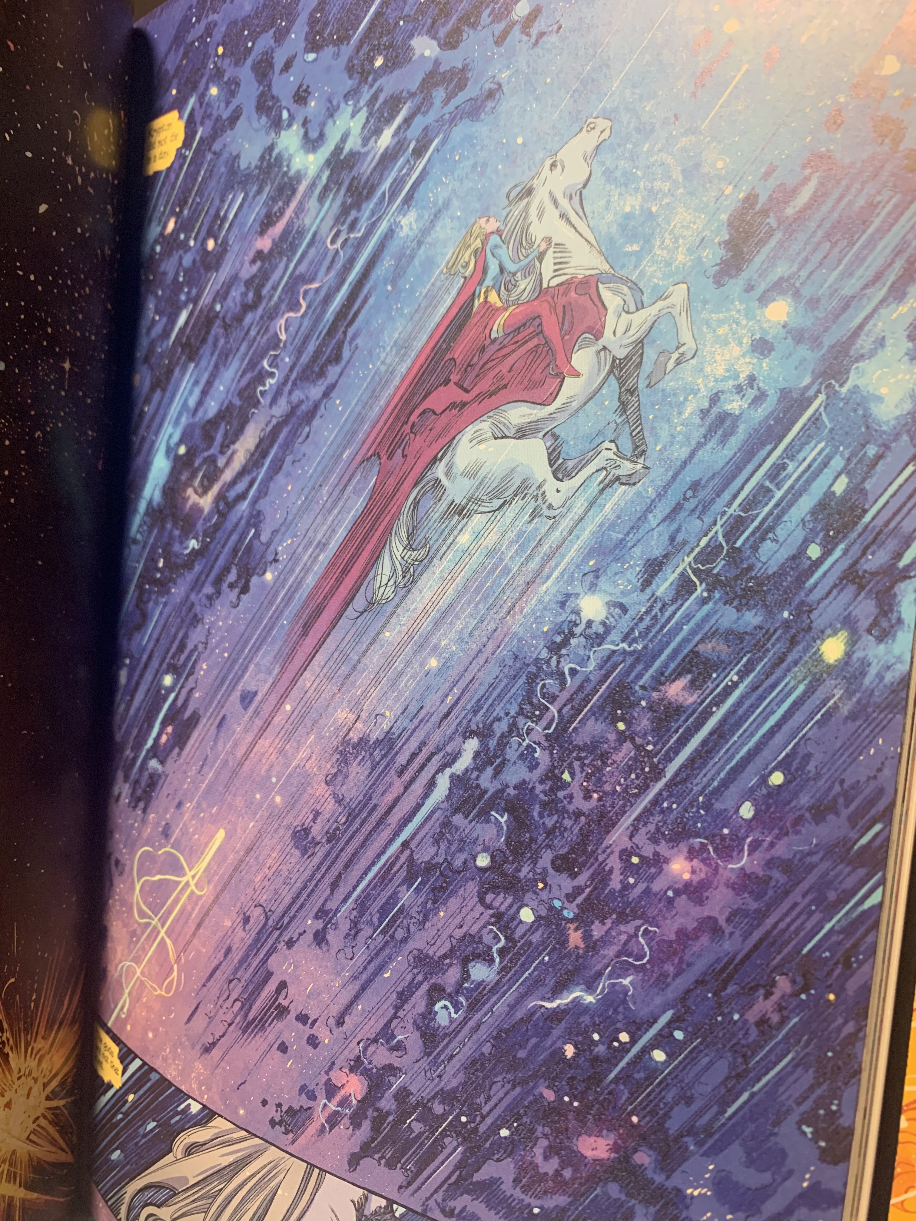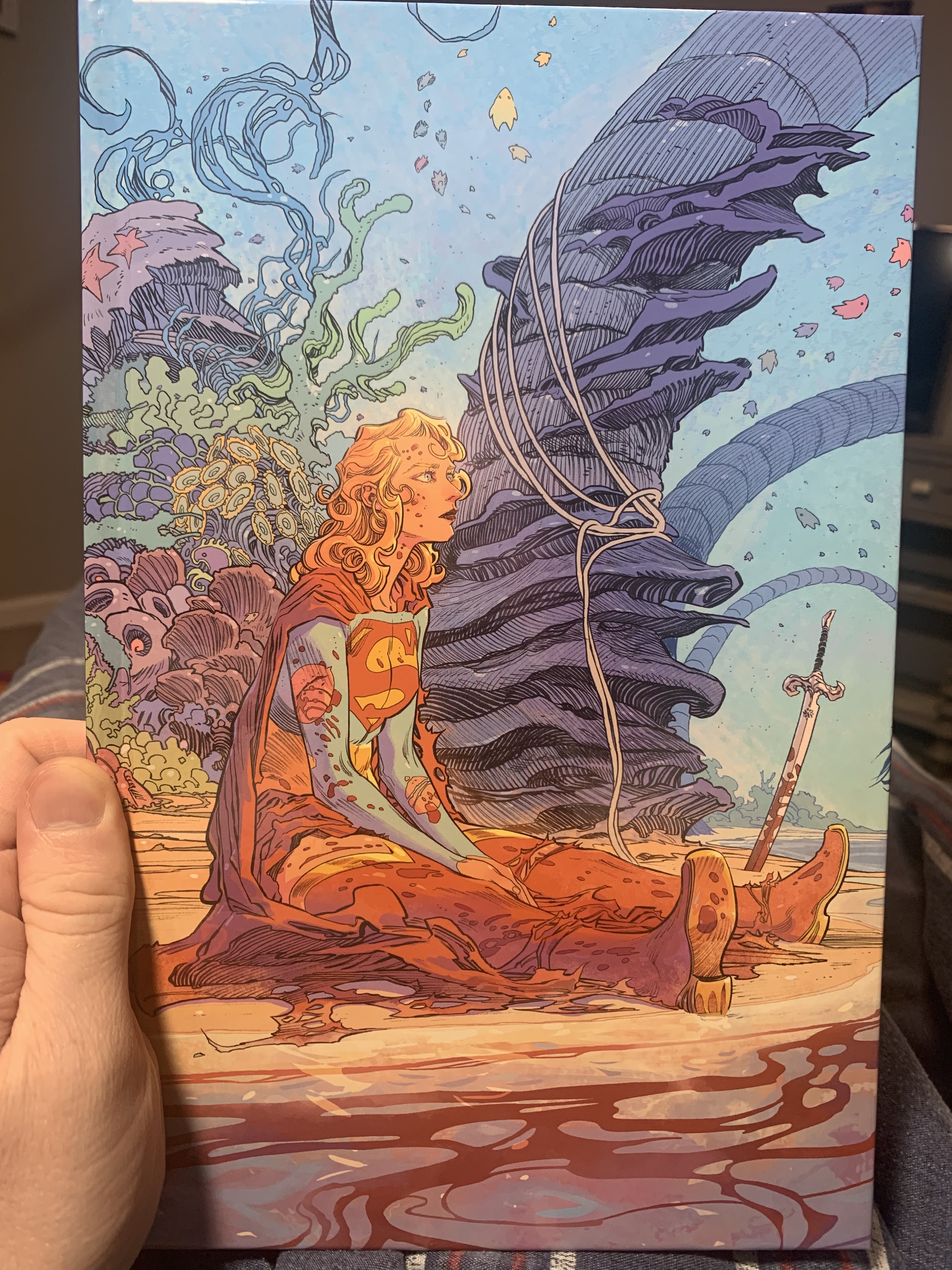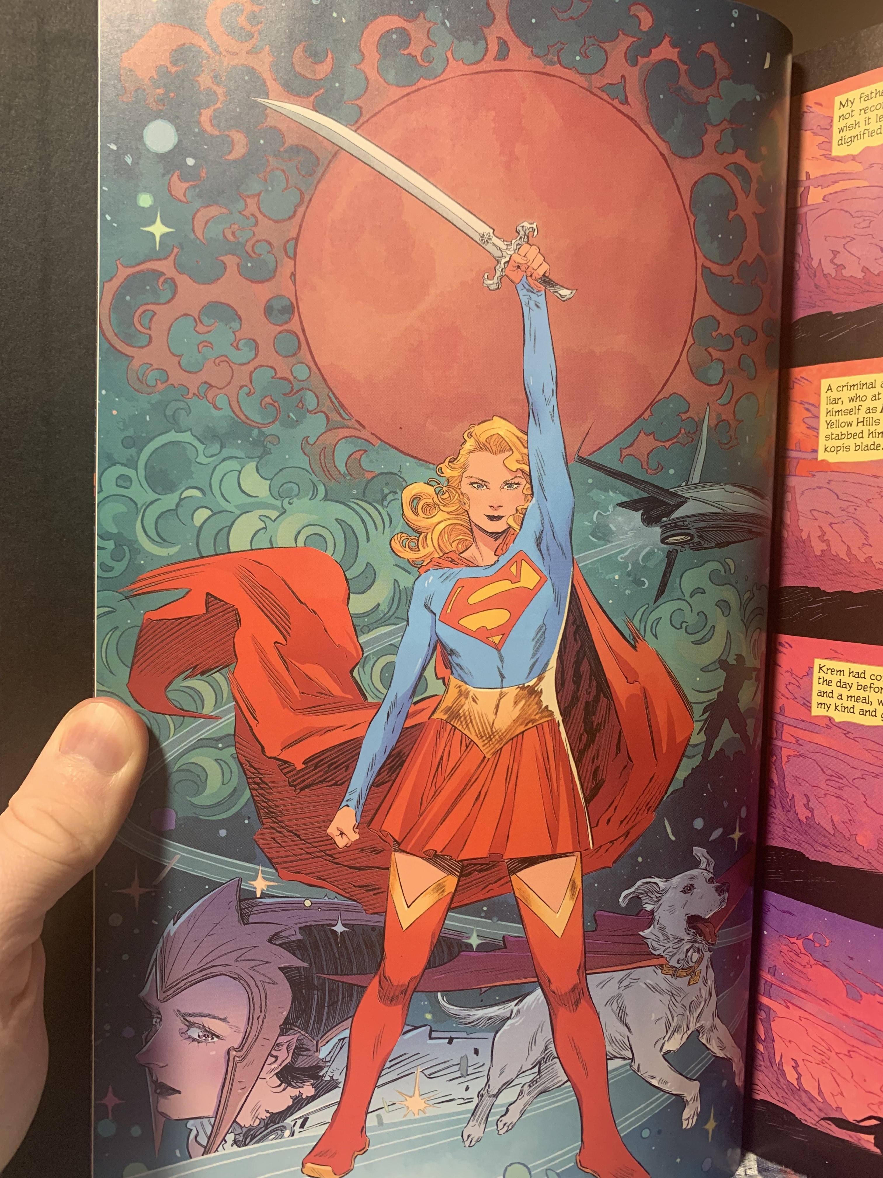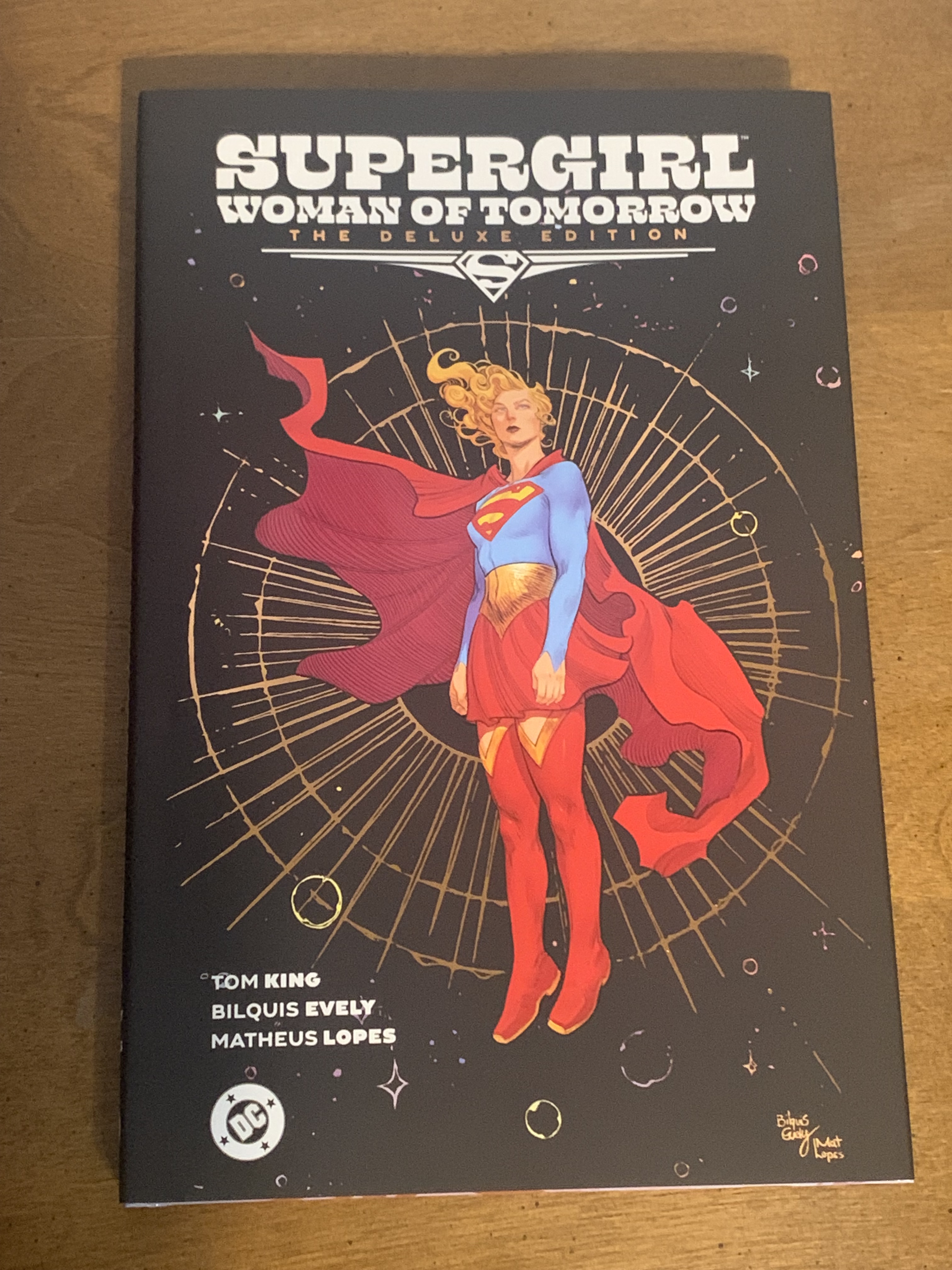 Supergirl is so damn cool. As someone who always focused on Superman, with the belief that it only ever made sense for their to be one superpowered being, I’ve been sorely missing out. Tom King, Bilquis Evely, and Matheus Lopes’ 2021-2022 saga, Supergirl: Woman of Tomorrow, bundled in this gorgeous 2024 deluxe edition, is one of the best graphic novels I’ve ever read. I was giddy (giddiness happens when I read about Superman, and now Supergirl, or Jack Reacher), I was awed by the art and the prose, I had goosebumps, and simultaneously (because of that panel), I had a few tears. Supergirl is just as inspiring as her cousin, and just as much a beacon of light and hope in a dark world.